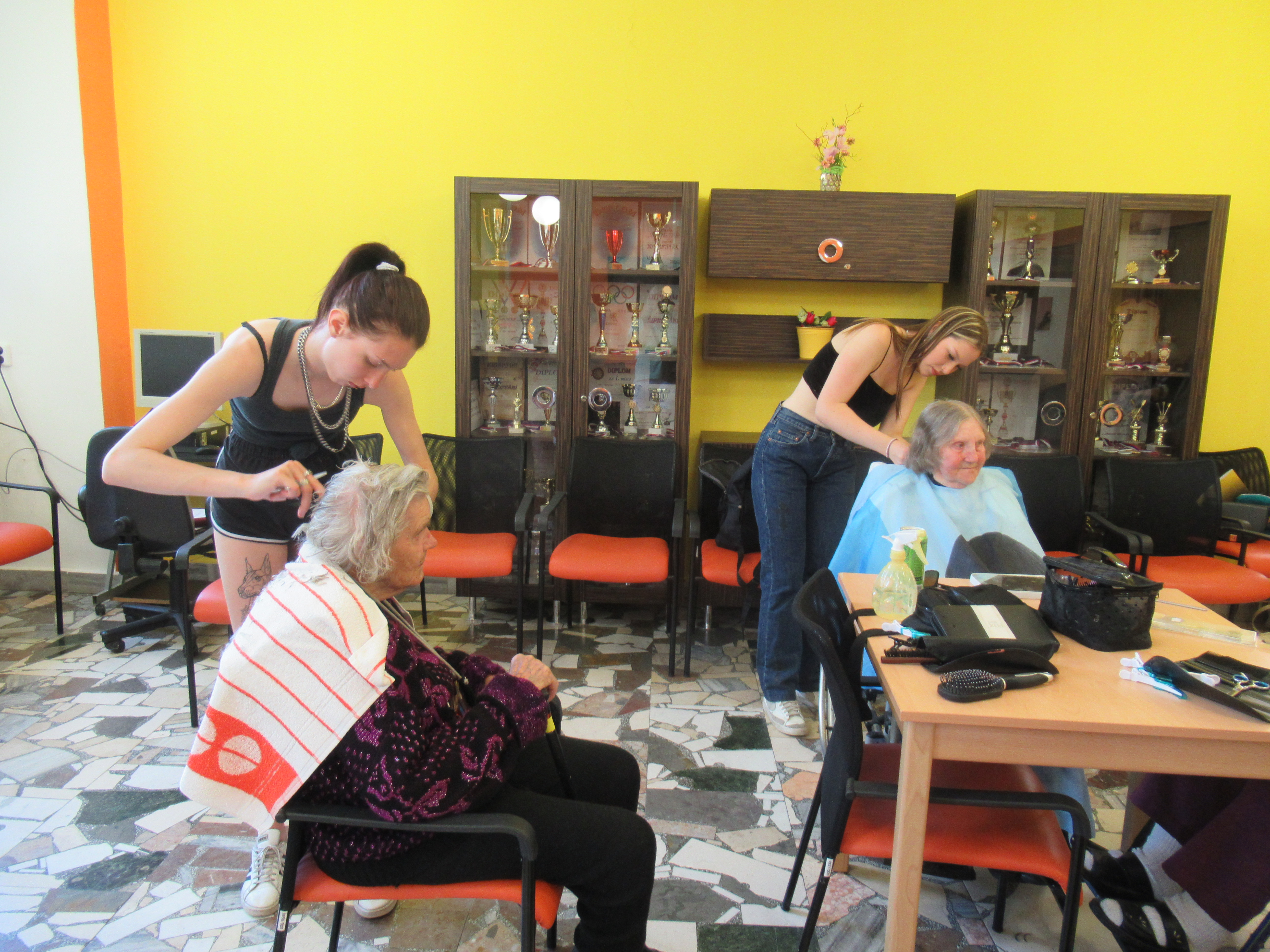 Ve čtvrtek 1.6. se naši senioři mohli nechat učesat a ostříhat od studentek Střední školy řemesel-obor kadeřník. Zájem byl veliký, senioři odcházeli spokojení a při loučení se studentkami bylo vidět, jak moc se těší na jejich další návštěvu.