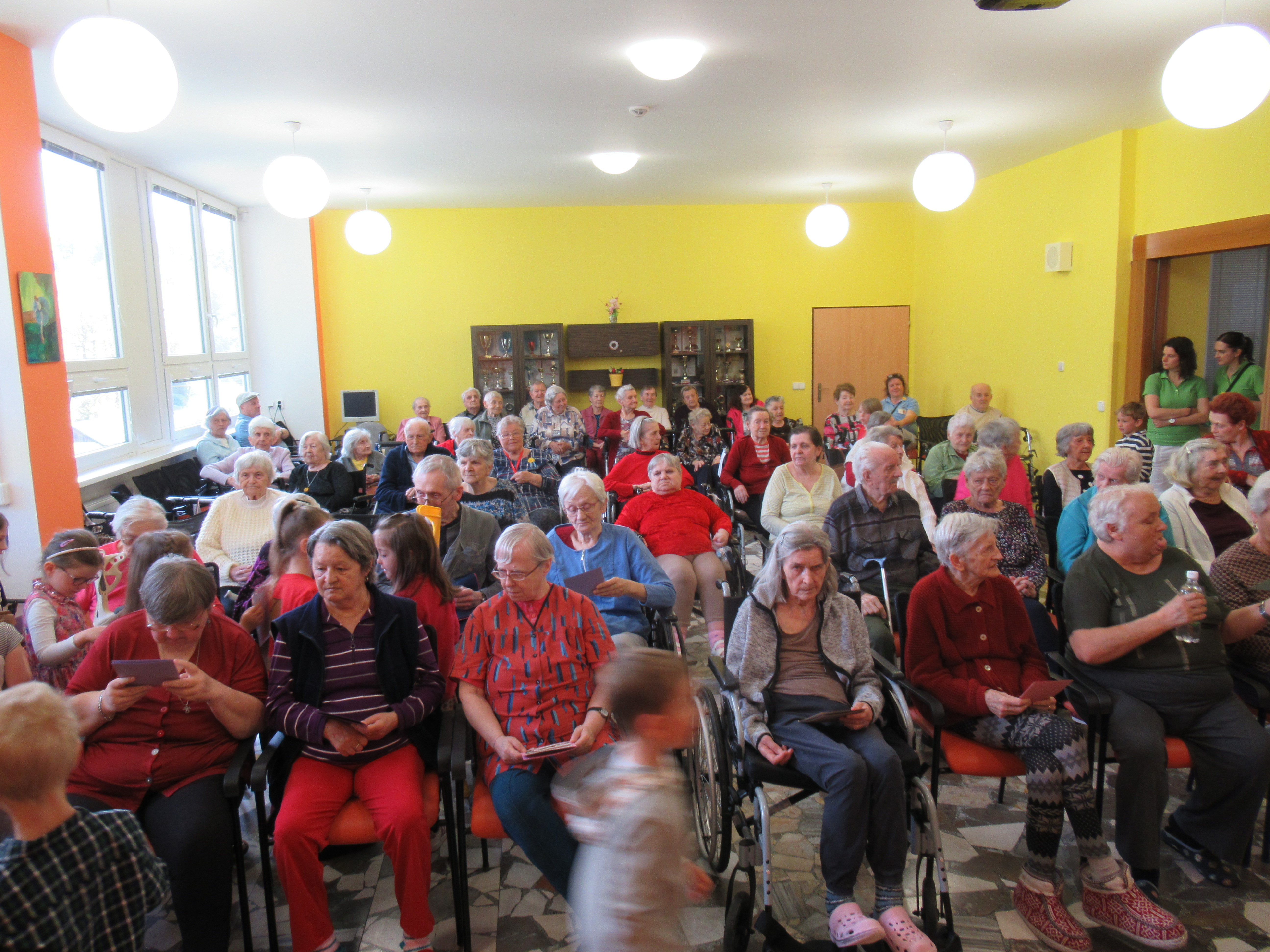 Den matek je den, kdy se vzdává pocta matkám a mateřství. Slaví se v různé dny na mnoha místech po celém světě. V Česku se slaví druhou květnovou neděli. I my jsme tento den oslavili. Pro "naše babičky“, a nejen pro ně, si připravily vystoupení děti z MŠ Pohádka, Veselá školka a MŠ Sluníčko, kterým tímto děkujeme. Vystoupení se našim uživatelům moc líbila. Navíc děti vlastnoručně vyrobily malé dárečky a přáníčka, jak pro babičky, tak i pro dědečky. Uživatelům, kteří se nechtěli nebo nemohli vystoupení zúčastnit, jsme přání rozdali na pokojích. V odpoledních hodinách u nás proběhla ochutnávka kvalitní čokolády, kterou si uživatelé mohli zakoupit. Všechny akce sklidily úspěch a vykouzlily úsměv na mnoha tvářích.