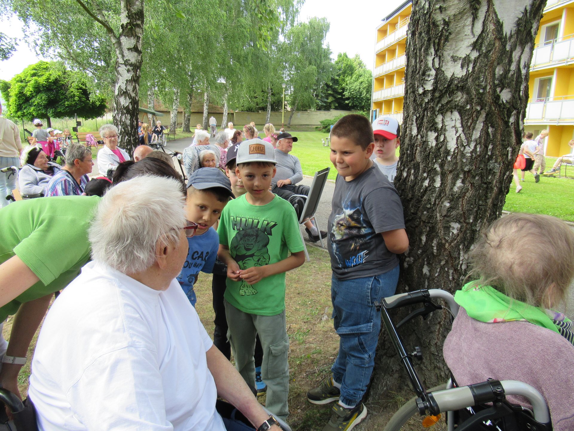 Aby naši klienti mužského pohlaví, oproti „babičkám“ nebyli ošizeni, připravili jsme pro ně oslavu Dne otců. Vystoupení, nejen pro naše „dědečky“, připravily děti základních škol. Program začal v dopoledních hodinách ve společenském sále, kde nás potěšily děti ze ZŠ Bohutín. Tento dopolední program byl vyhrazen pro uživatele DZR, aby měli možnost vše krásné, co nám děti předaly, naplno prožít. Odpoledne nás potom svou návštěvou poctila velmi početná skupina dětí z 6.ZŠ, která se shromáždila na zahradě. Děti měly připravený pestrý program plný písní, básní a tanečních vystoupení, které oslavovaly otcovskou lásku, sílu a odvahu. Malí umělci svým nadšením a radostí rozzářili oči všech přítomných a vytvořili nezapomenutelnou atmosféru. Akce se setkala s velkým ohlasem a ukázala, jak důležité je navzájem si vážit a oceňovat rodinné vztahy.