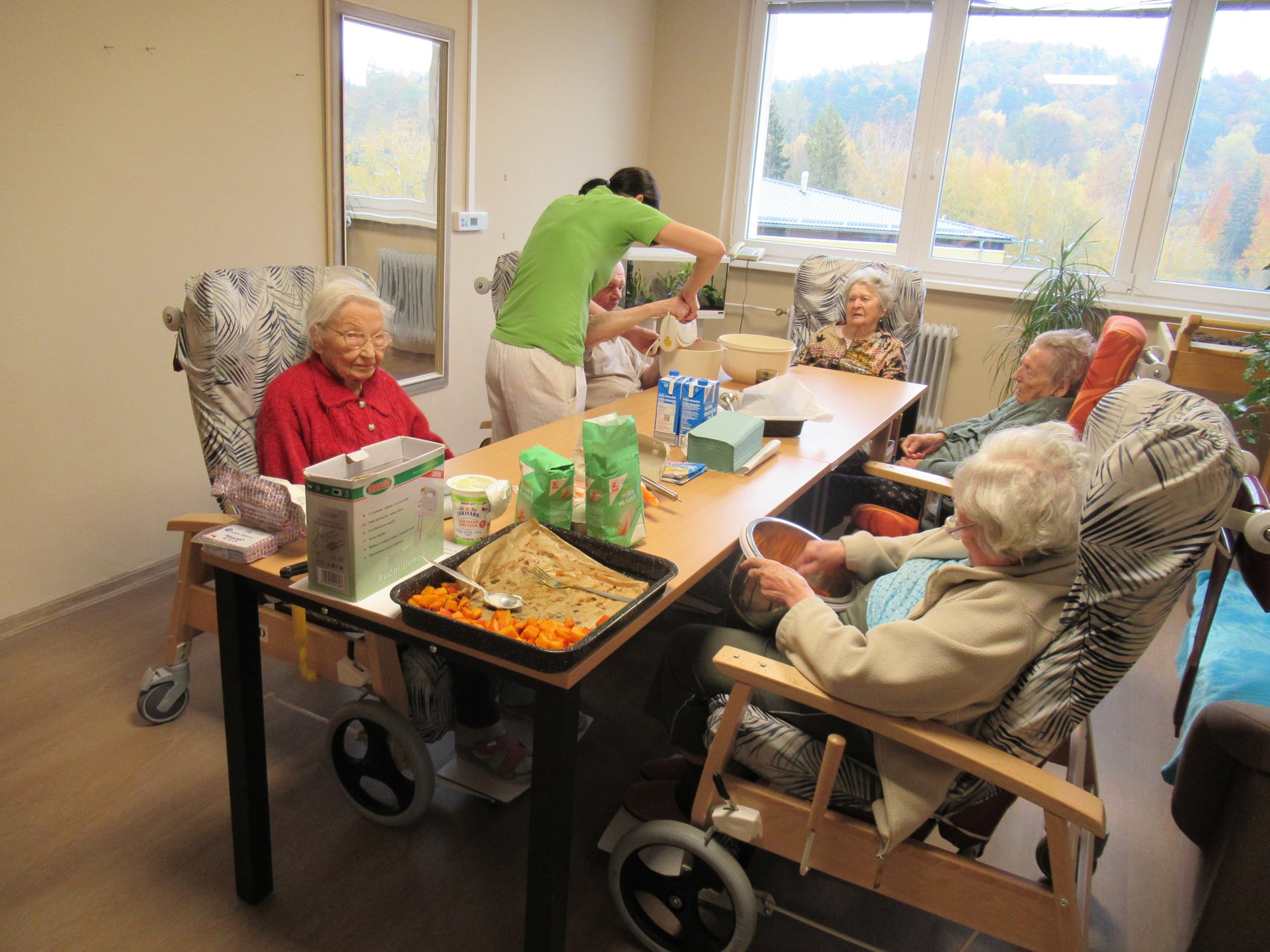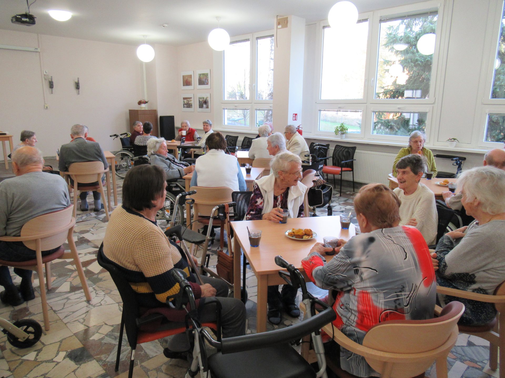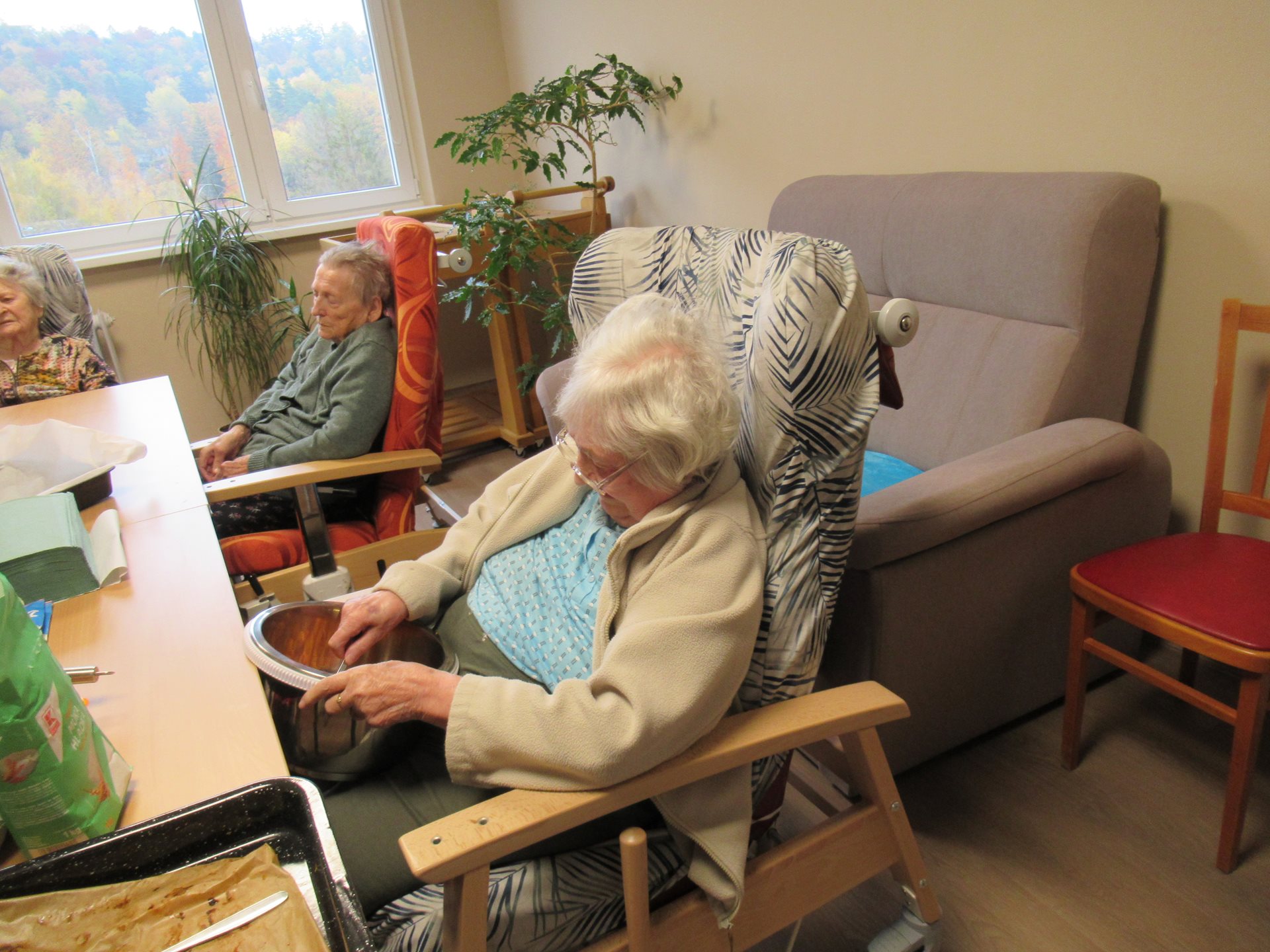 Upečené dobroty, které získaly mnoho pochval z řad uživatelů, se potom odpoledne podávaly ke kávě. Posezení u stolů se rychle proměnilo v příjemné povídání. Klienti sdíleli zážitky, vzpomínali na podzimy svého mládí a užívali si klidnou atmosféru.