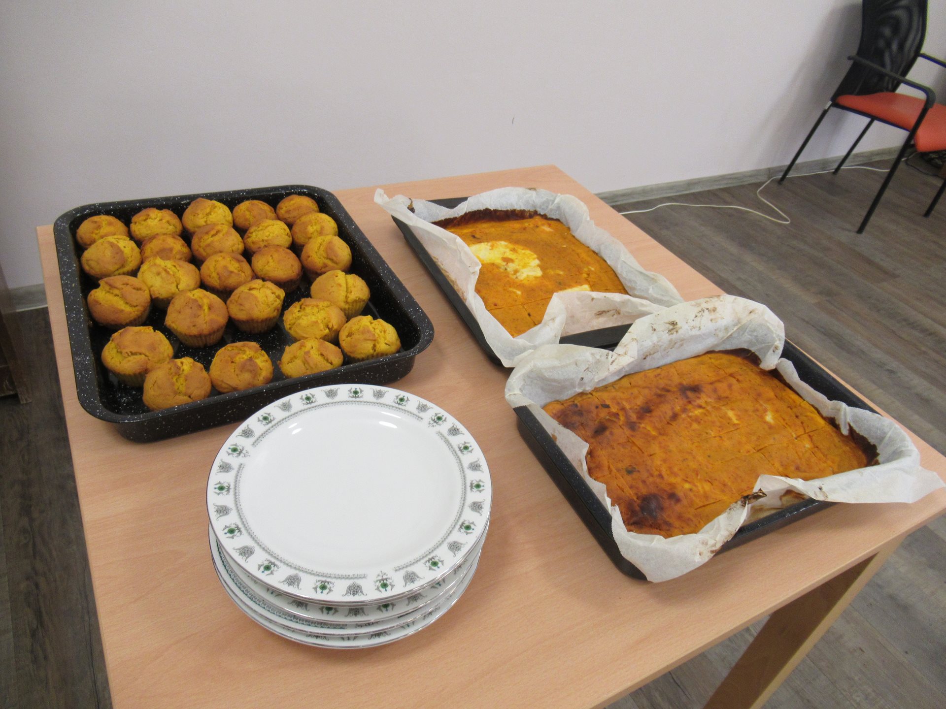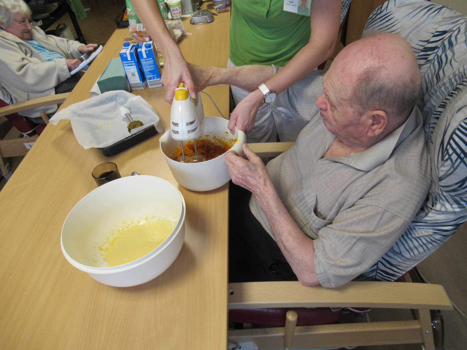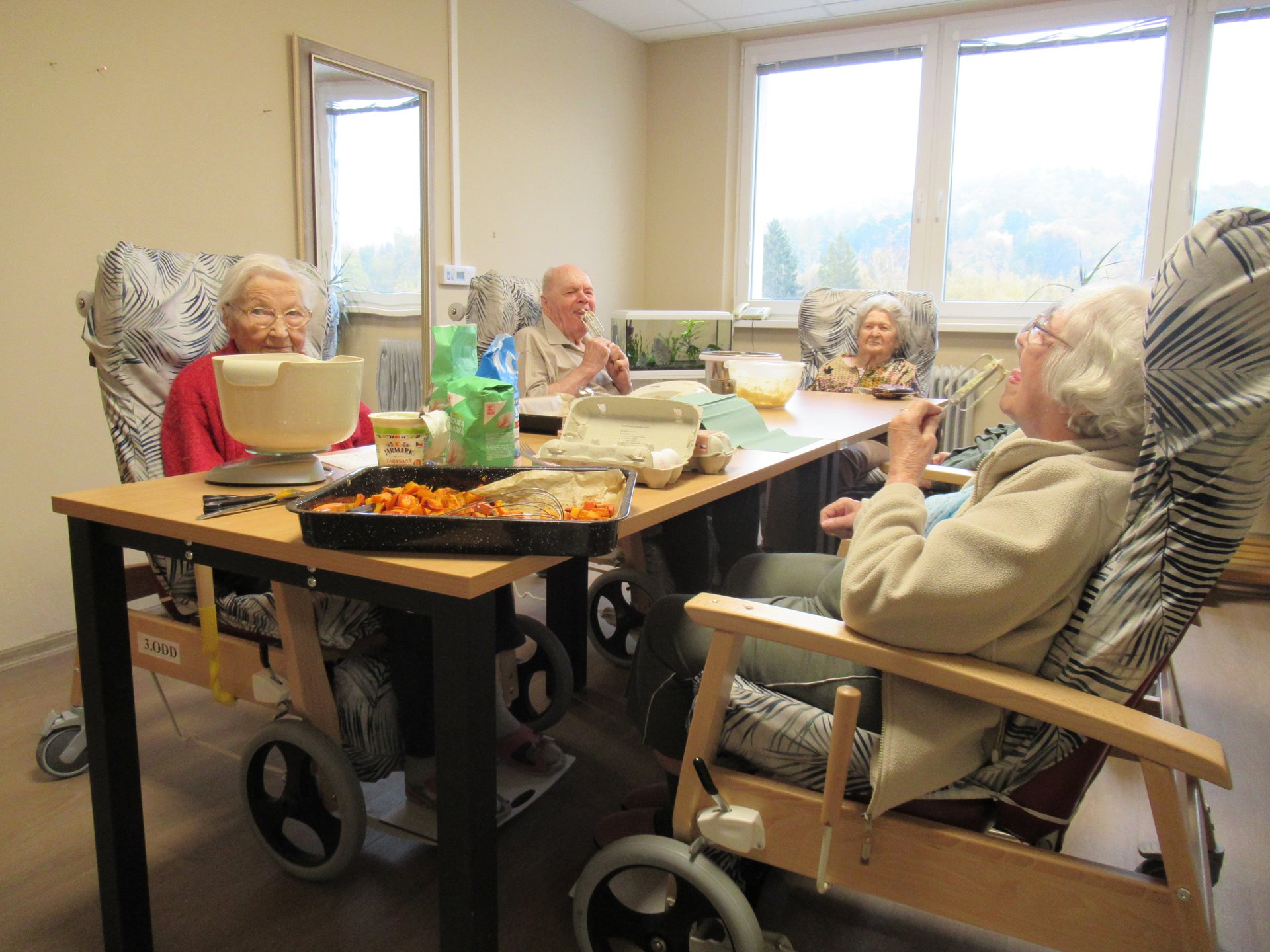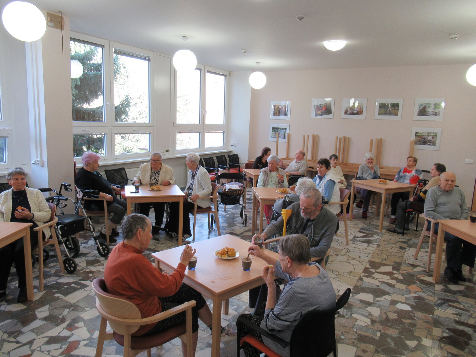 Upečené dobroty, které získaly mnoho pochval z řad uživatelů, se potom odpoledne podávaly ke kávě. Posezení u stolů se rychle proměnilo v příjemné povídání. Klienti sdíleli zážitky, vzpomínali na podzimy svého mládí a užívali si klidnou atmosféru.