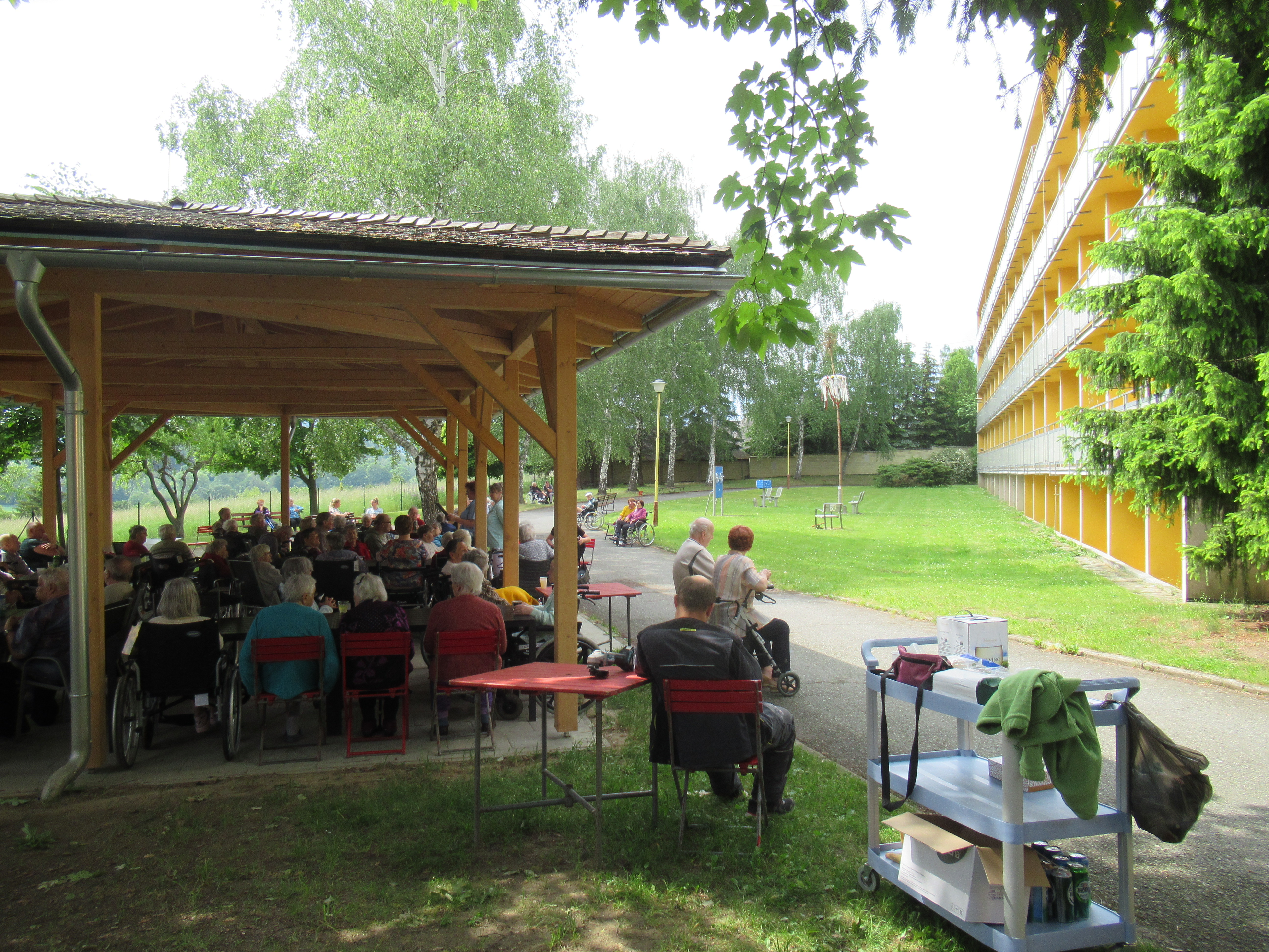 Naši uživatelé si tuto tradici mohli připomenout v úterý 6.6., kdy jsme „naši“ májku společně pokáceli a popovídali jsme si o zvycích, s tím spojených. Při této příležitosti nám zazpíval sbor ŽAVEZ, kterému tímto děkujeme.