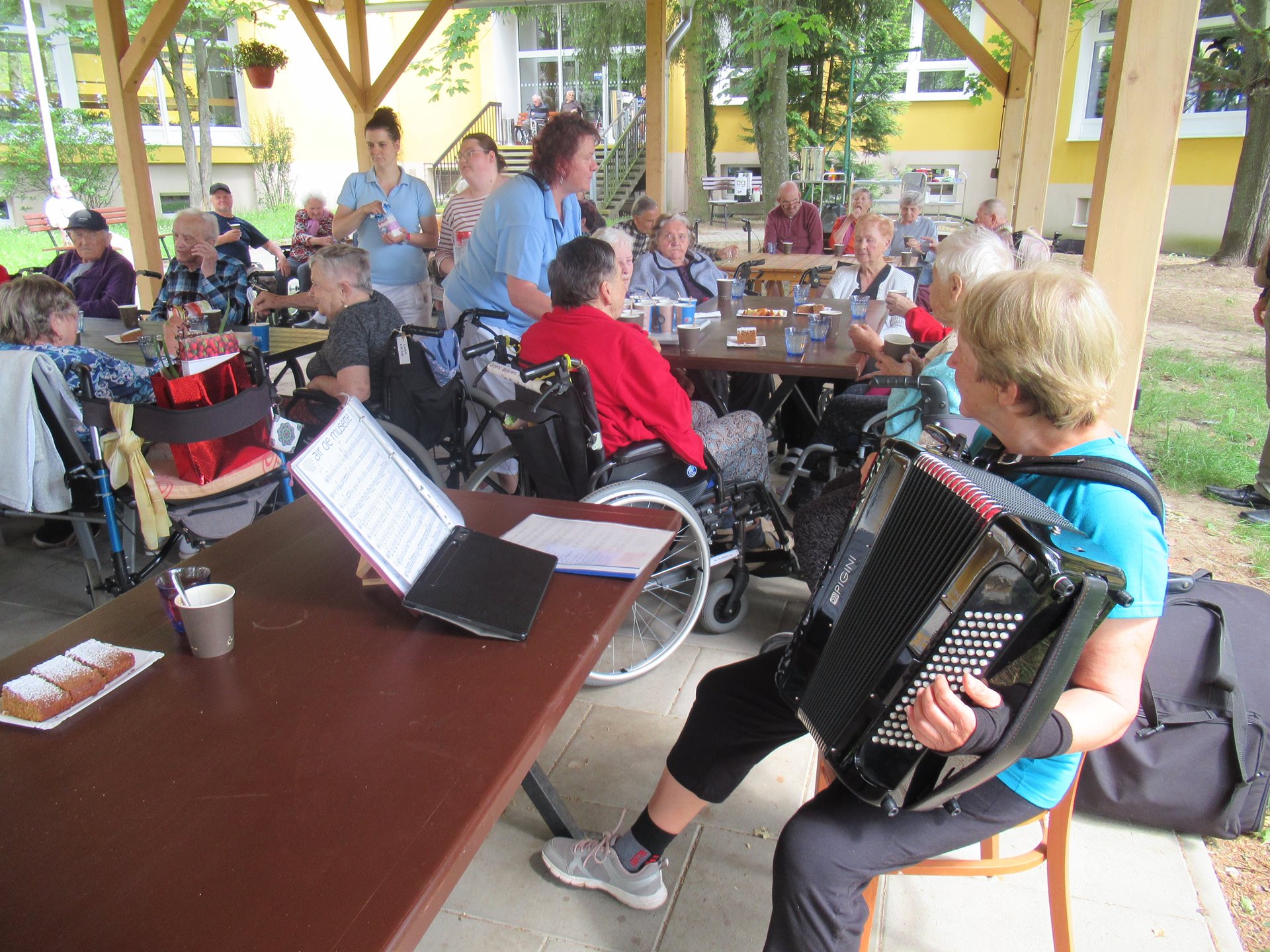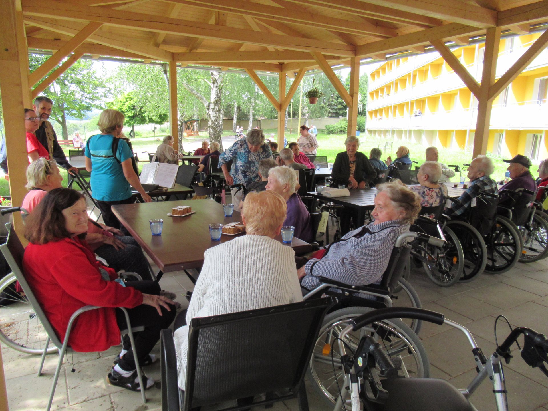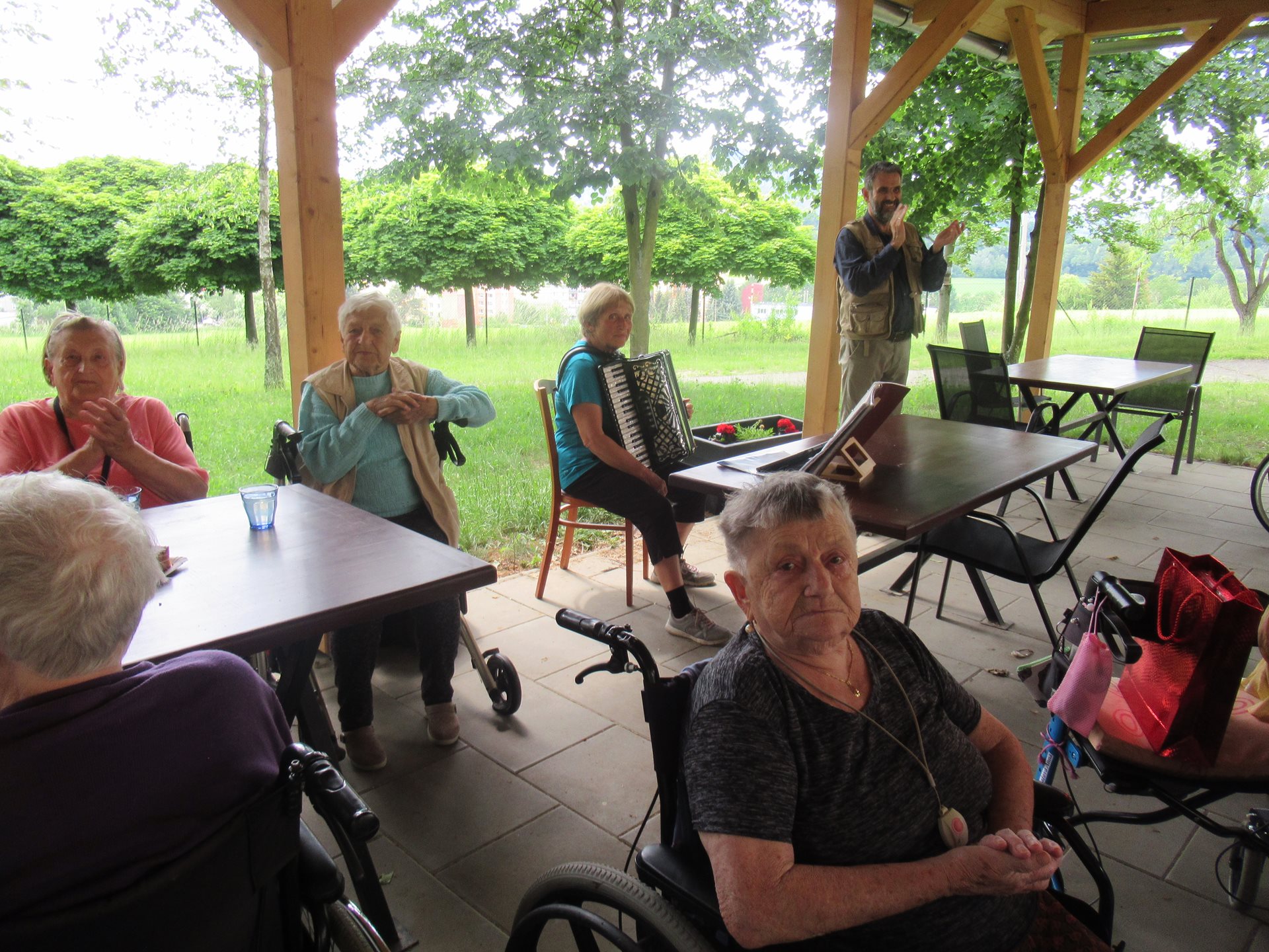 V pátek 31.5. se na naší zahradě tradičně kácela májka. Pro ještě příjemnější a veselejší atmosféru nám hrála harmonika. Všichni jsme si tuto příležitost užili.