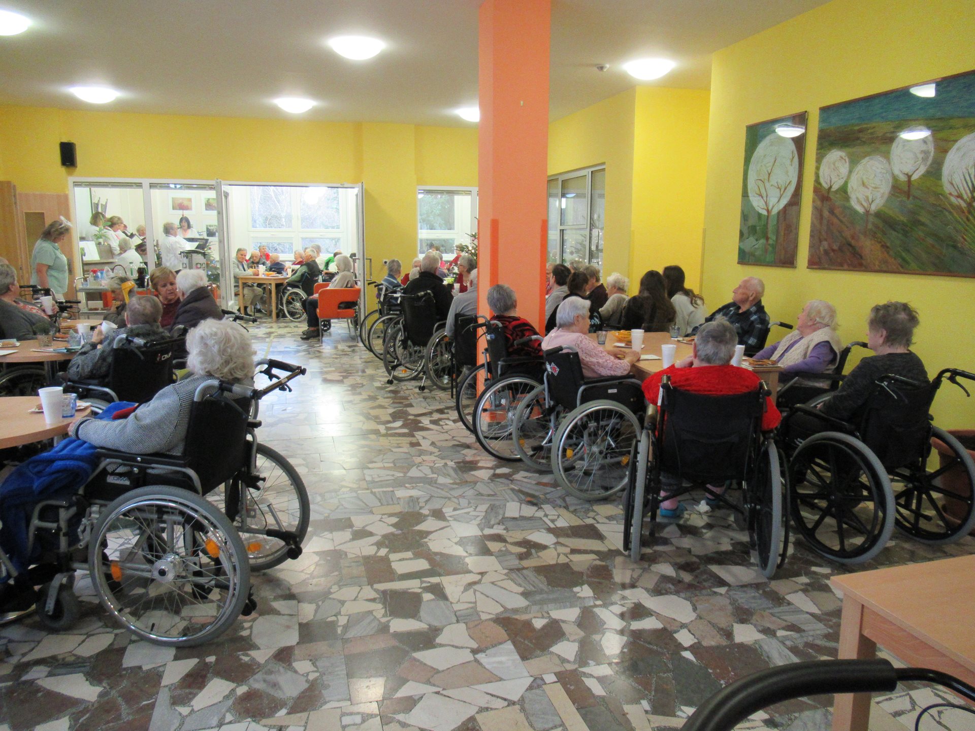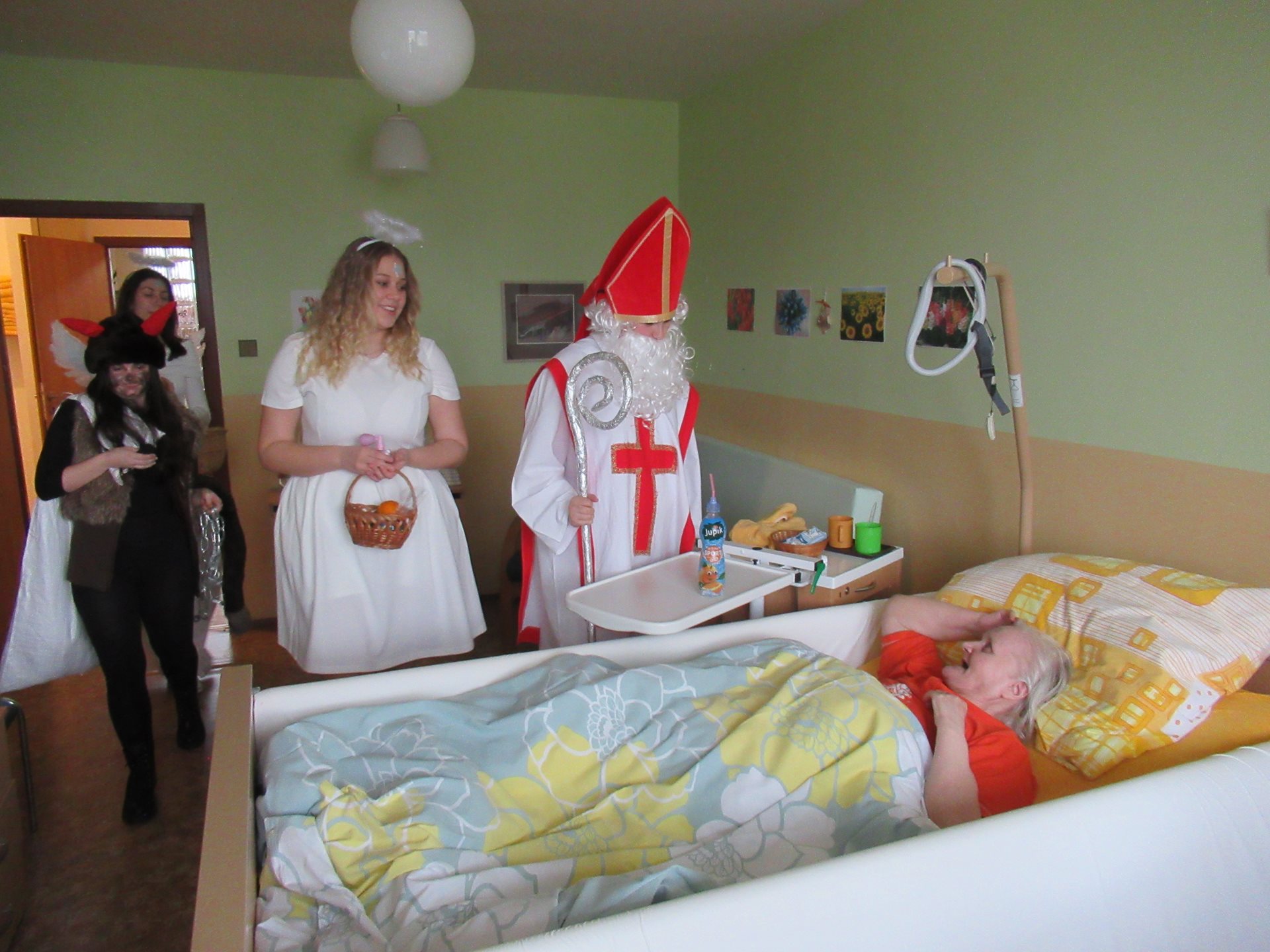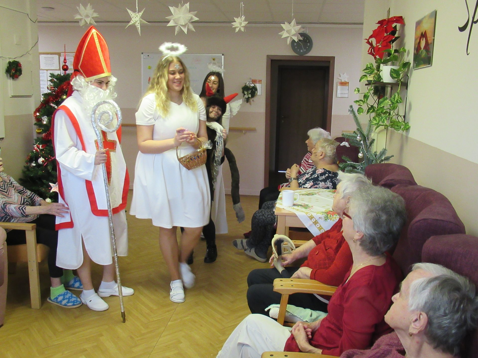 Ve čtvrtek 5. prosince zavítal do našeho domova pro seniory vzácný host – svatý Mikuláš, a samozřejmě ho doprovodili také čert a anděl. Celý den se nesl v duchu radosti, úsměvů a dojetí. Mikulášská nadílka se stala krásnou tradicí, na kterou se obyvatelé každoročně těší. Mikuláš navštívil každého obyvatele osobně a předal mu malý balíček s laskominami. Nechyběl ani čert, který ale nikoho neodnesl – naopak rozdával úsměvy. Anděl pak potěšil laskavým slovem a přáním klidných svátků. Odpolední mikulášskou zábavu letos zpestřil pěvecký sbor Andante. Taková setkání jsou pro naše seniory velmi důležitá – přinášejí radost, připomínají krásu tradic a prohlubují spojení mezi generacemi.