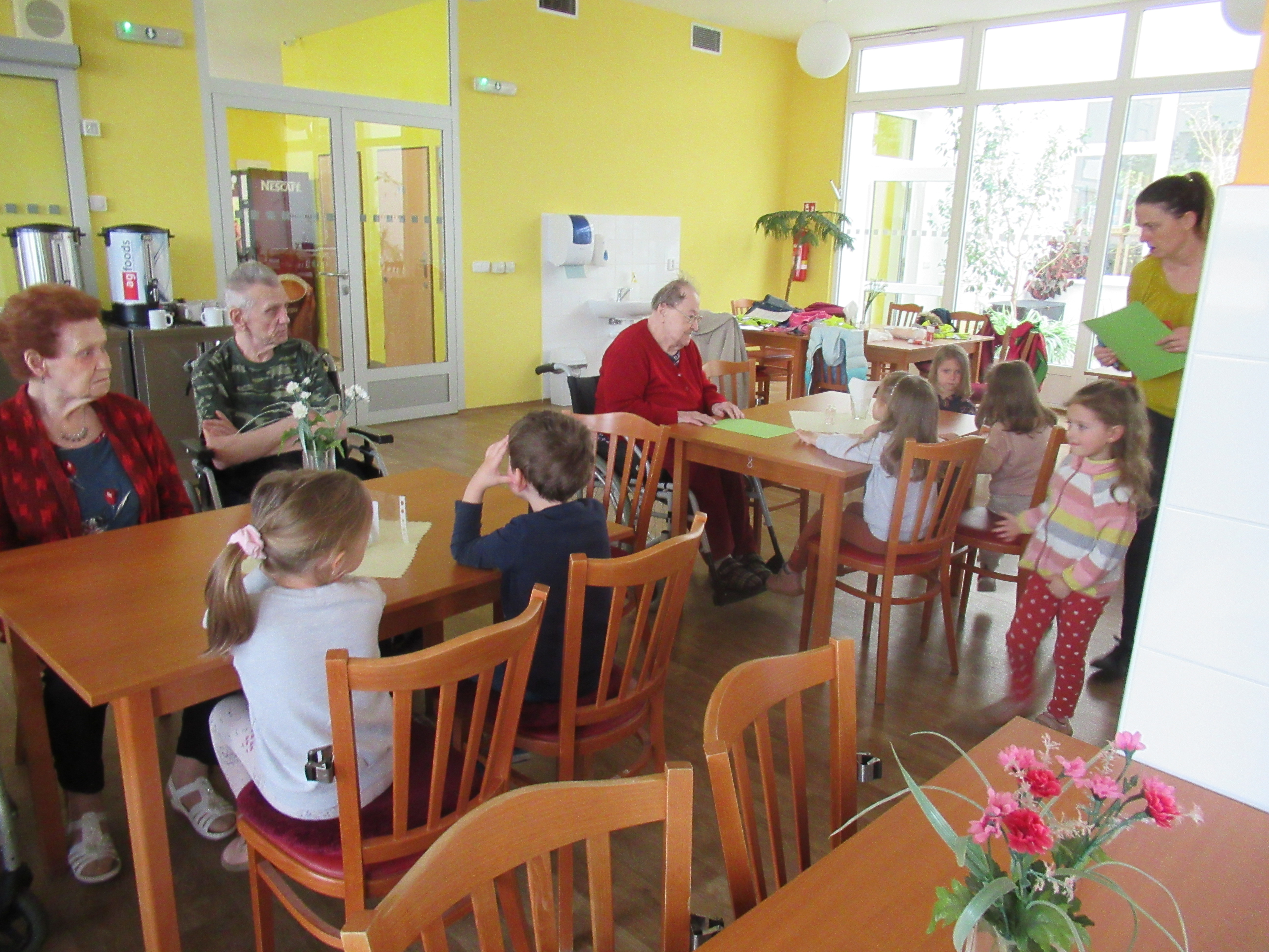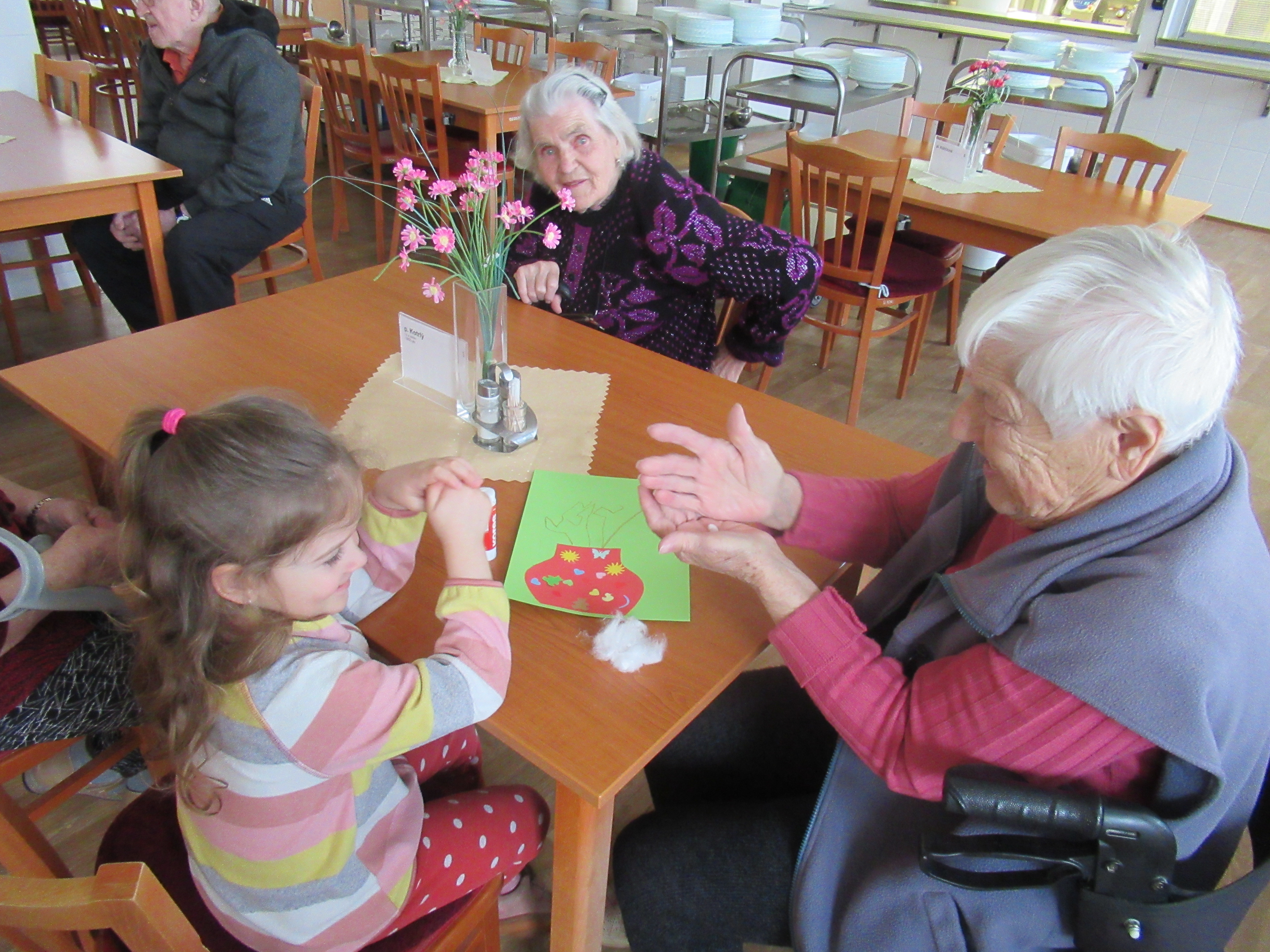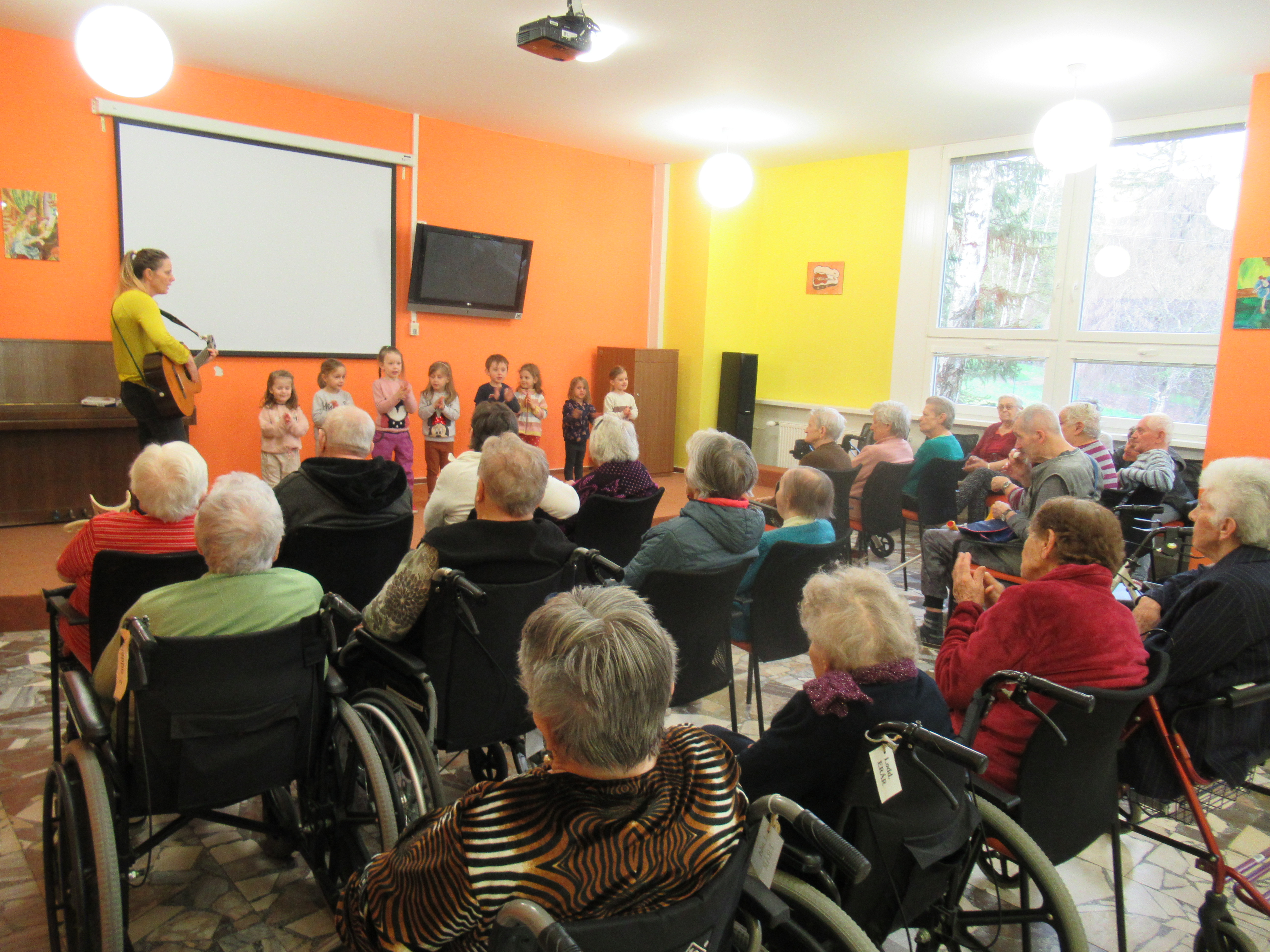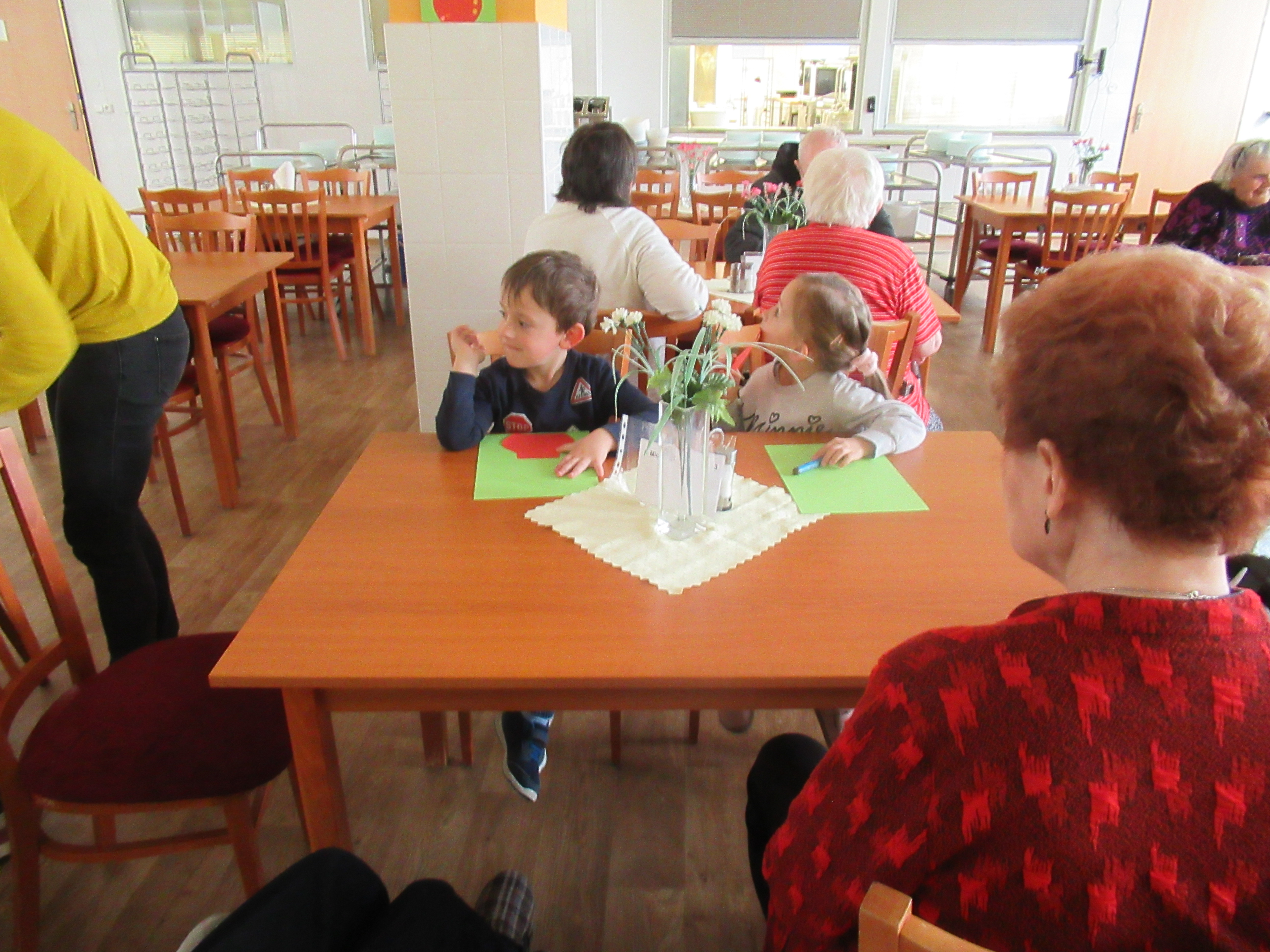 V našem zařízení se snažíme podporovat setkávání různých generací, proto k nám pravidelně dochází děti ze základních a mateřských škol, s nejrůznějšími vystoupeními. Tentokrát nám zazpívaly děti z mateřské školky Borůvka a také si pro naše uživatele připravily jarní tvoření.