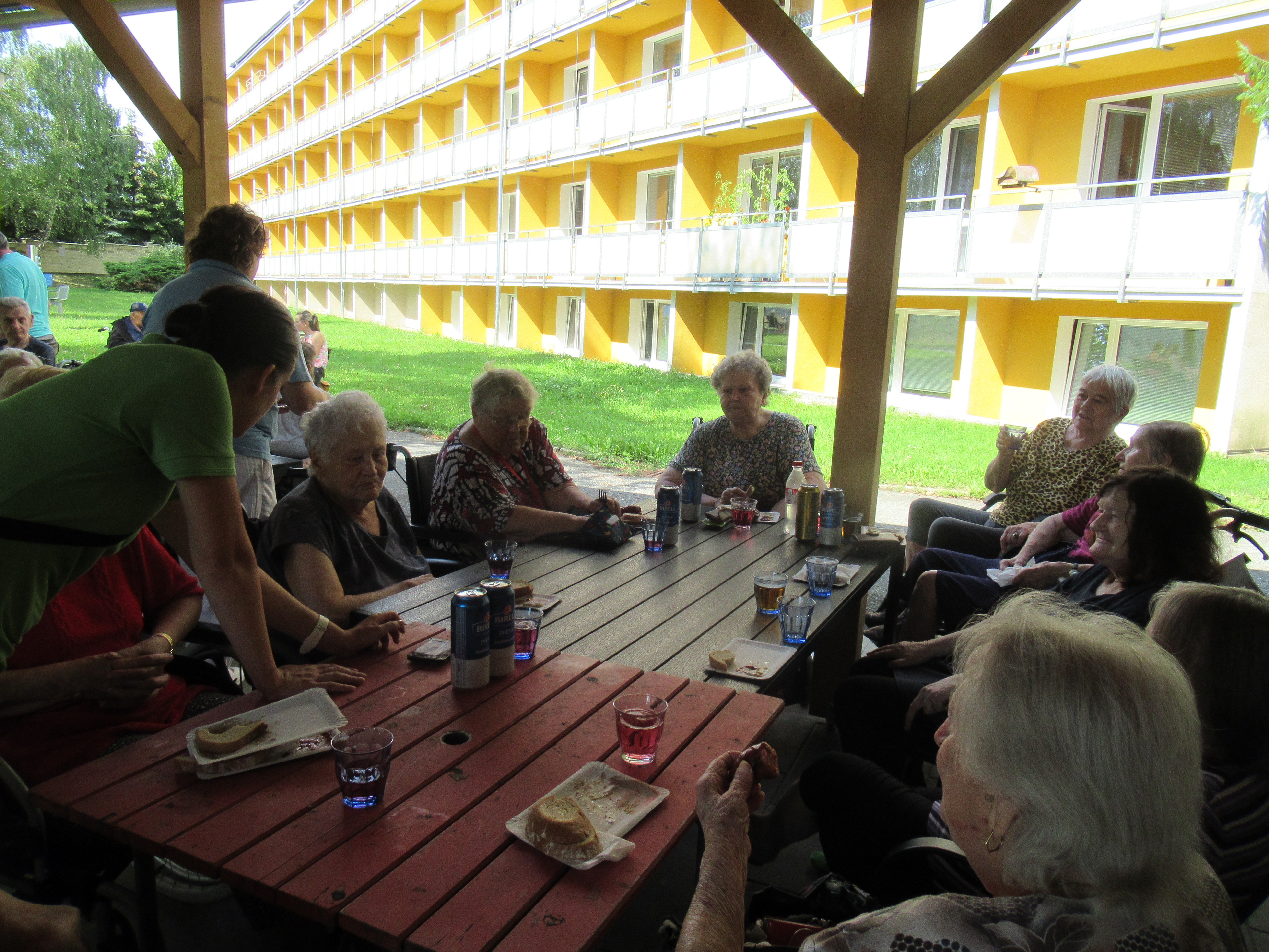 Další opékací odpoledne jsme u nás měli ve čtvrtek 17.8.. Jak je vidět z fotografií, účast byla opět veliká. O program se nám postarala paní Slávka Krejčí, která nám zahrála a zazpívala oblíbené písničky. Tímto jí moc děkujeme. Doufáme, že než venku začne zima, pár takových akcí ještě stihneme, protože je naši uživatelé mají velice rádi.