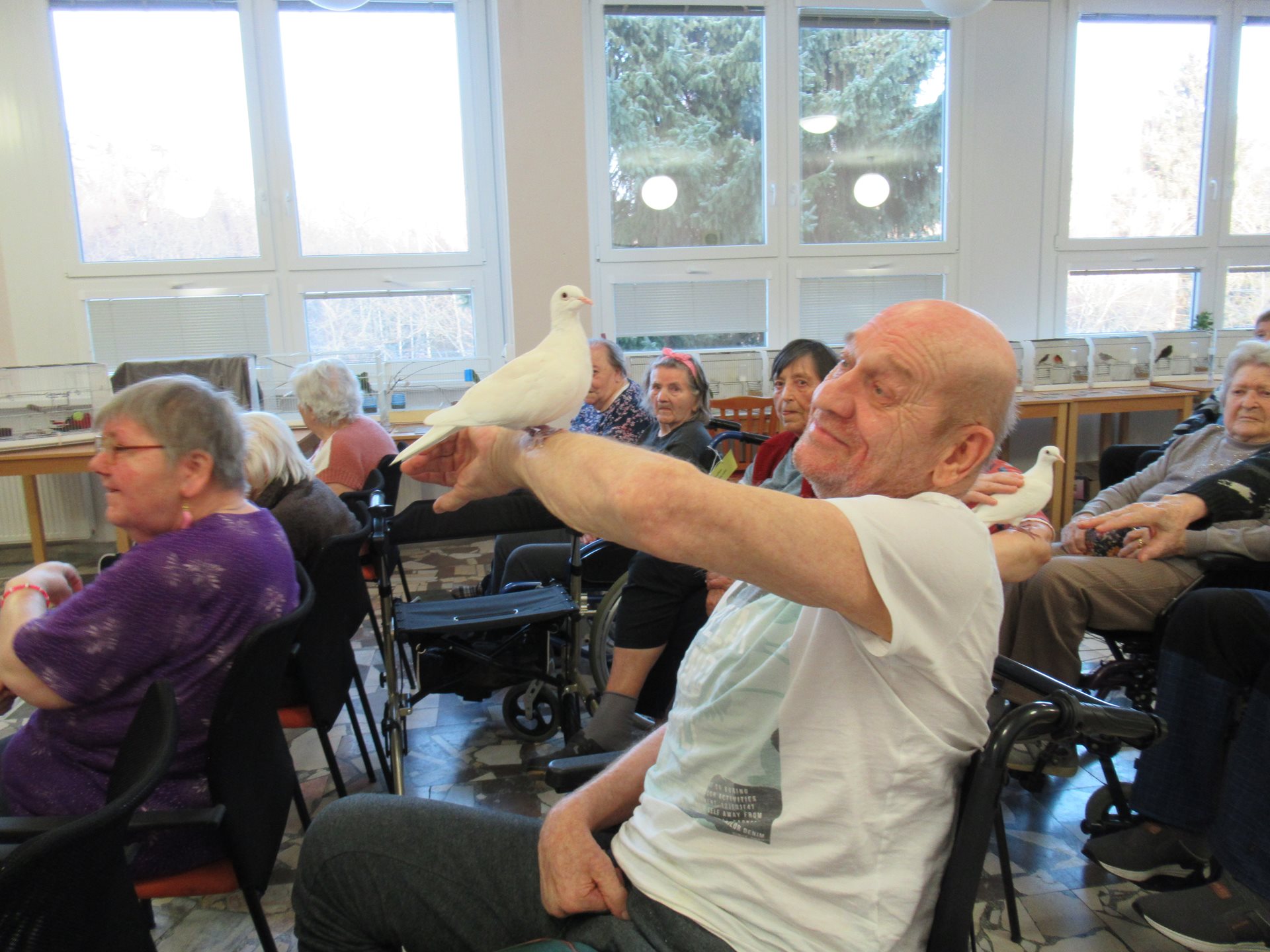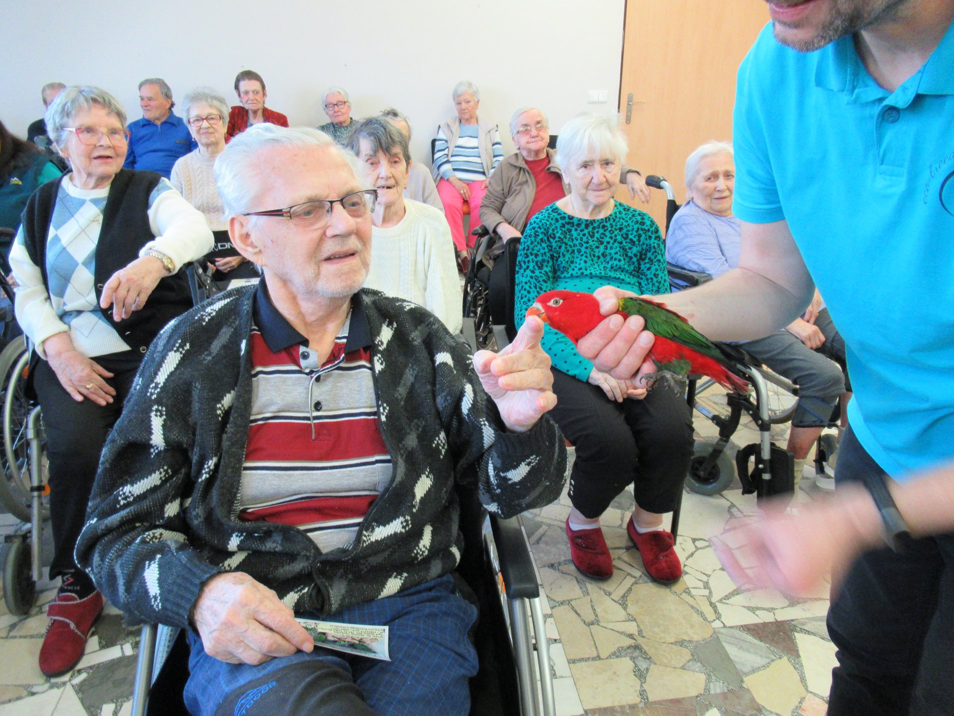 Ve čtvrtek nás navštívil pan Vachutka se svými papoušky. Připravil poutavou a přínosnou přednášku, která potěšila všechny milovníky přírody. Součástí programu byla také ukázka různých druhů papoušků naživo a promítání fotografií a videí. Účastníci se dozvěděli mnoho zajímavostí o životě papoušků, jejich chování, potravě i schopnosti napodobovat lidskou řeč. Přednášející poutavě vyprávěl o rozdílech mezi jednotlivými druhy, jejich původu a péči o ně v domácím prostředí. Velkým zážitkem byla možnost vidět papoušky zblízka, pozorovat jejich barvy, pohyby a povahu. Někteří papoušci byli velmi společenští a návštěvníky pobavili svou zvědavostí i veselým chováním. Děkujeme za krásný zážitek a těšíme se na další návštěvu.