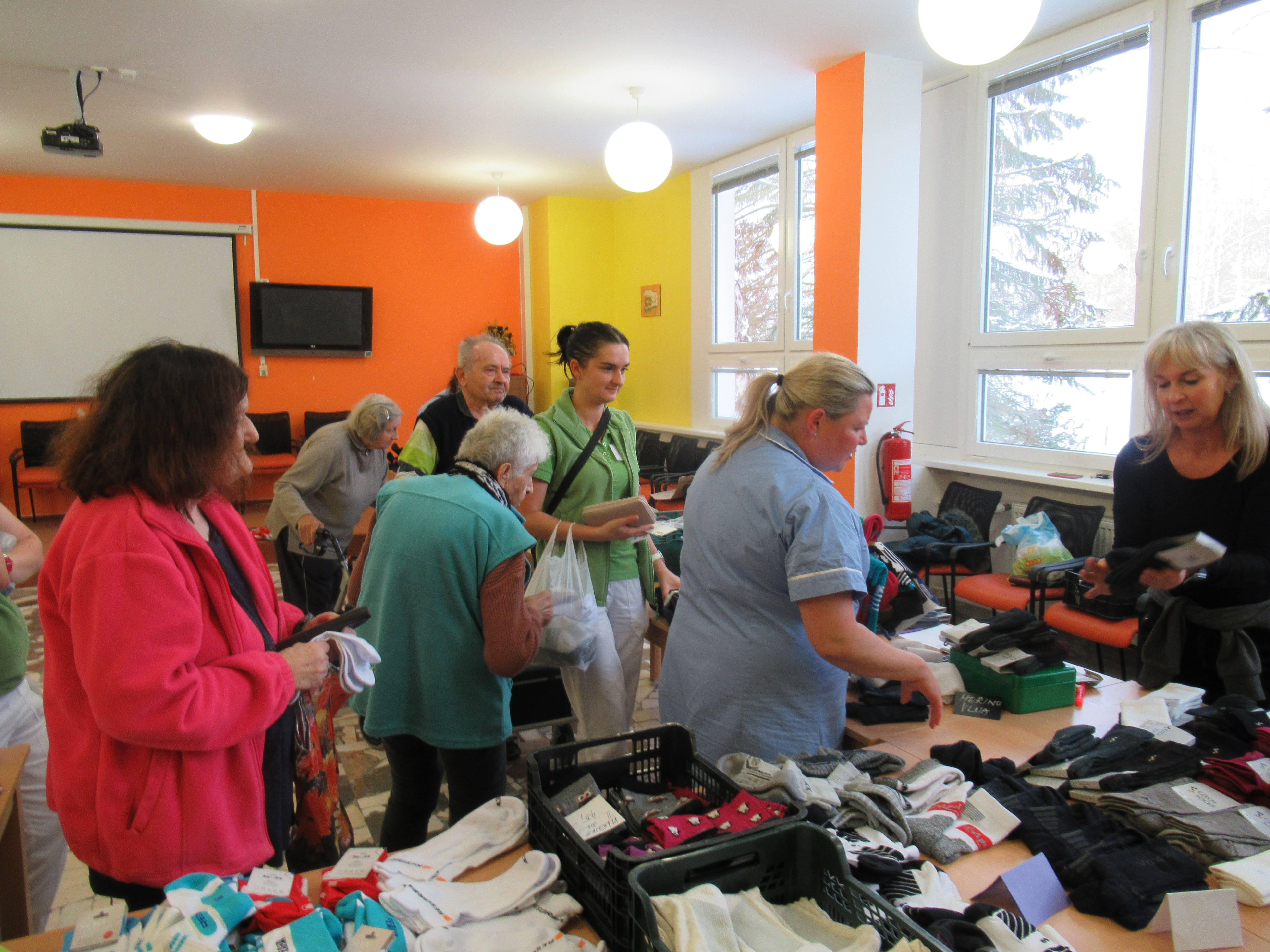 Již podruhé, a určitě ne naposledy, k nám přijela zástupkyně české pletařské firmy, která nám nabídla široký sortiment ponožek. Na výběr byly ponožky kotníkové, klasické, zateplené, z merino vlny, jednobarevné i s vánočním motivem a hlavně vše za velmi příznivé ceny, což potěšilo nejen uživatele, ale i personál. Někdo nakupoval pro sebe, někdo využil tuto akci pro pořízení vánočních dárků, protože "měkouši" nesmí pod stromečkem chybět.