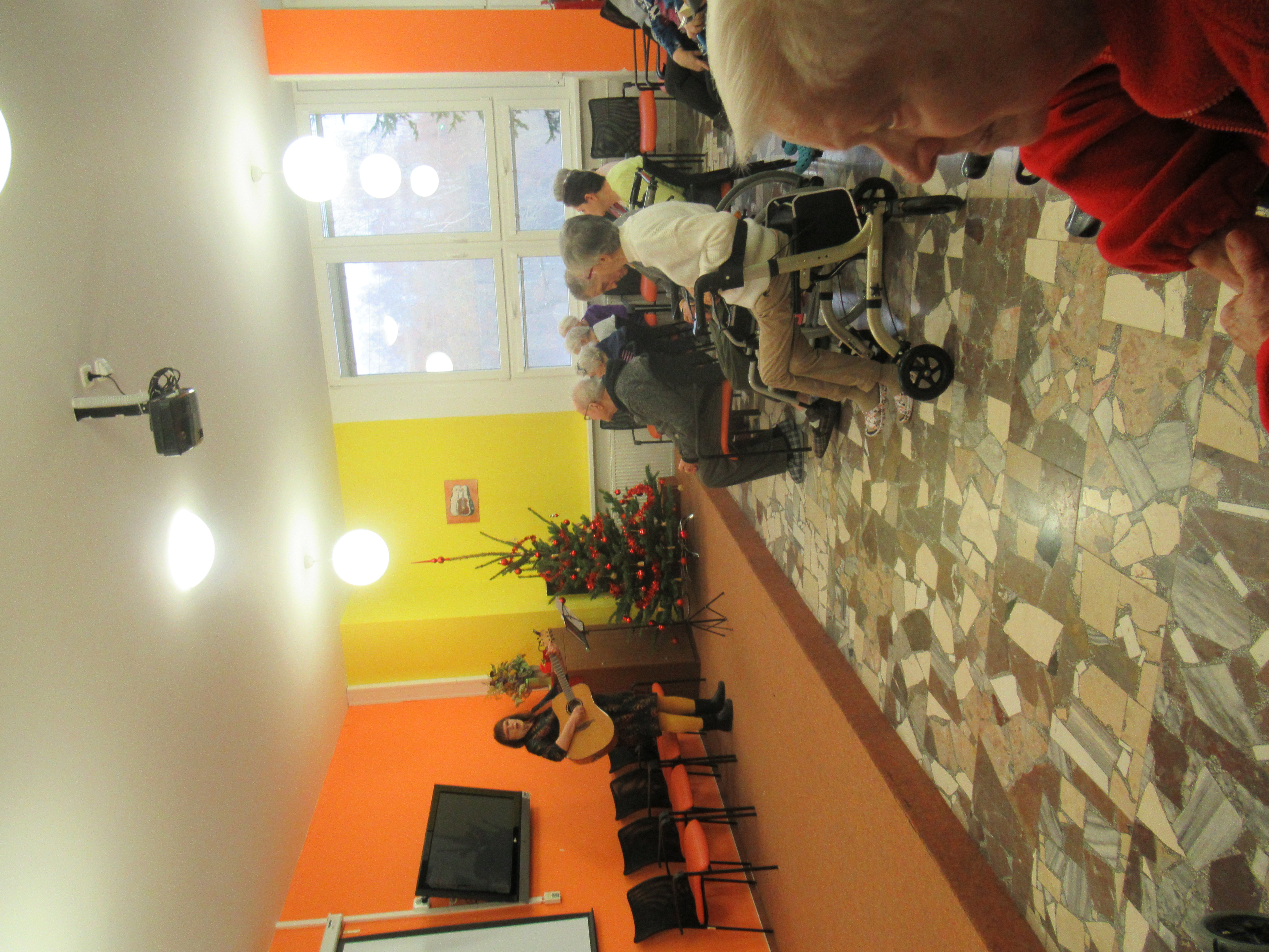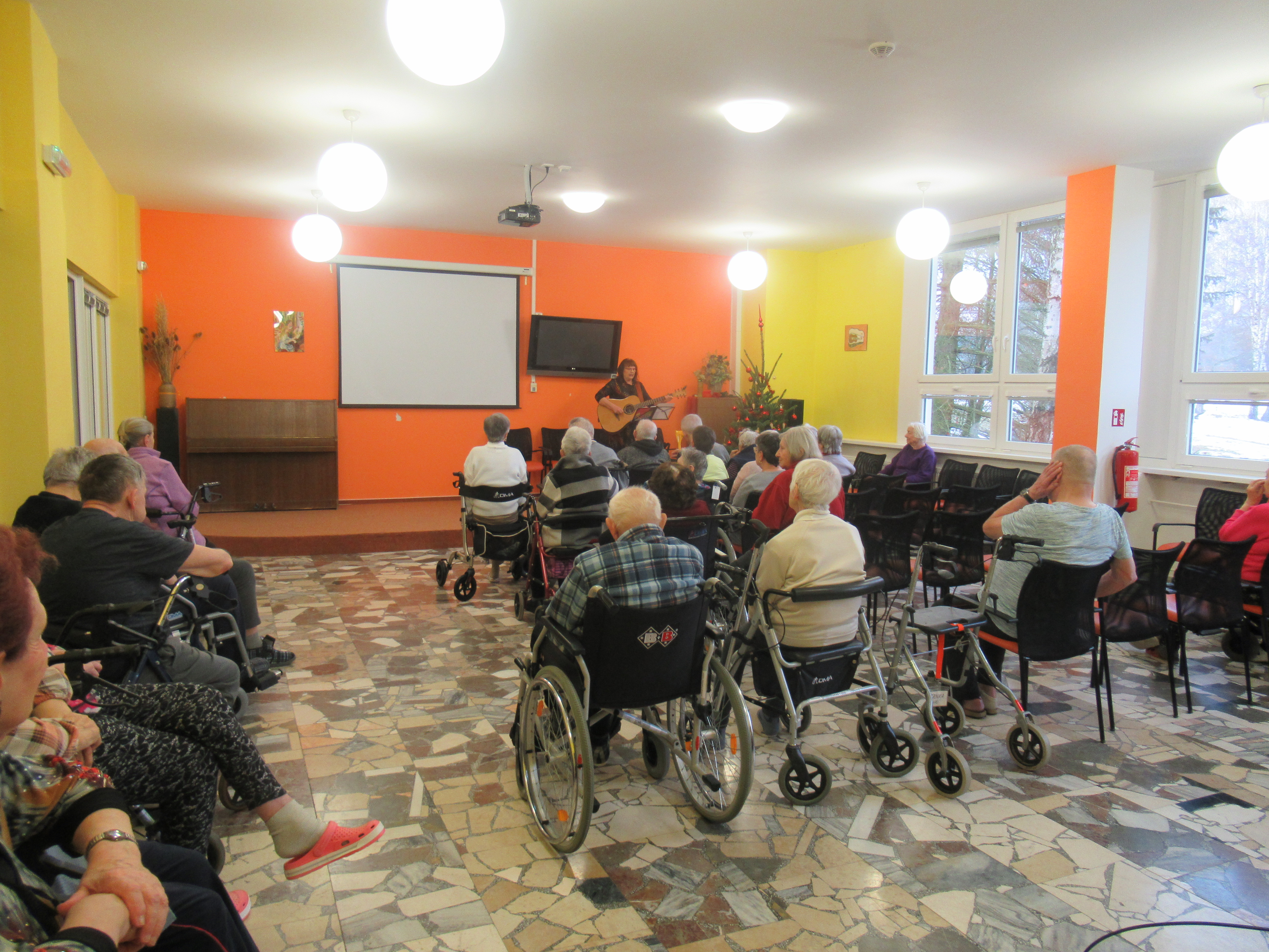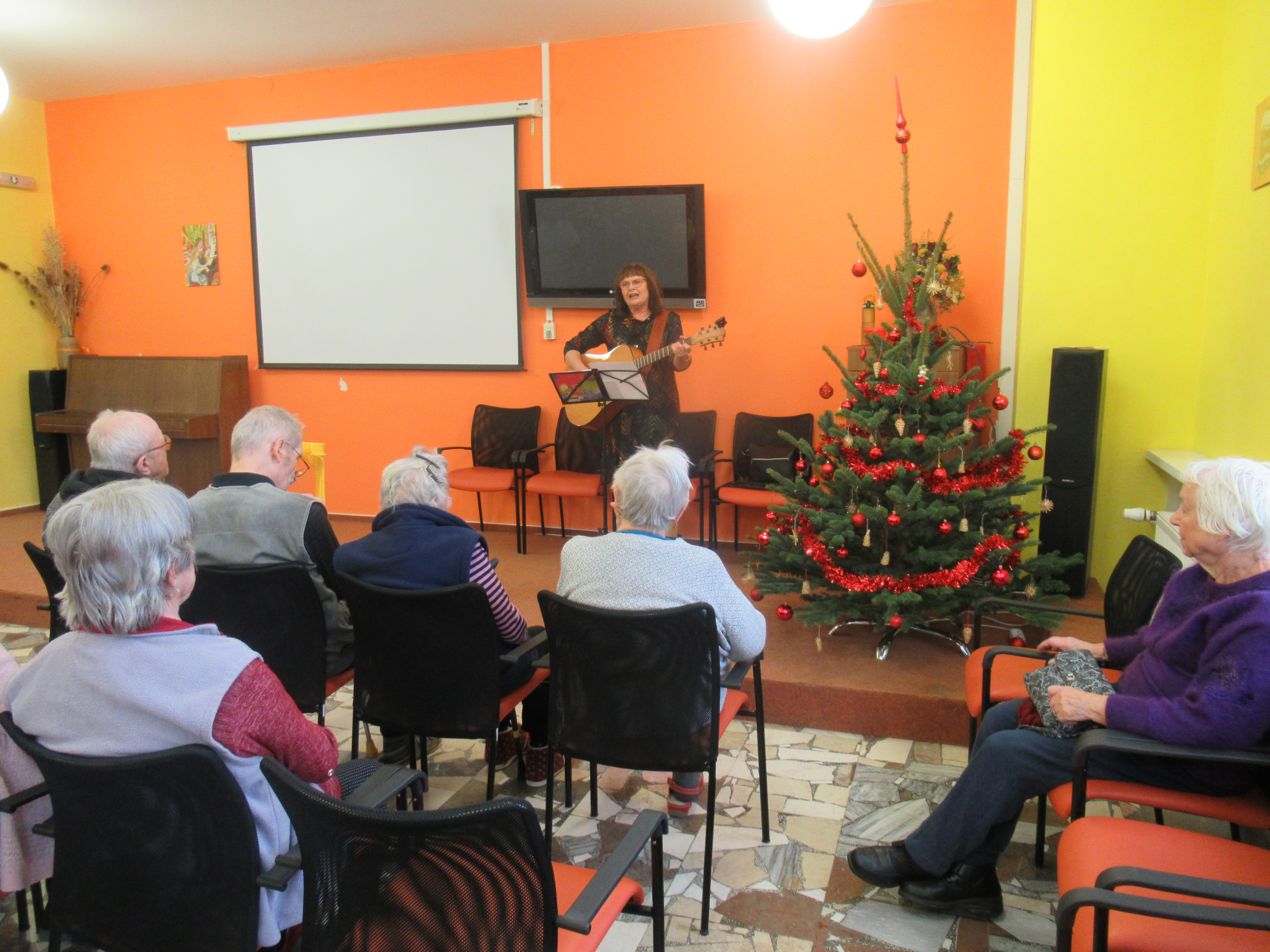 Pro navození vánoční atmosféry měli uživatelé možnost si zazpívat vánoční písně a koledy s paní Slávkou Krejčí, která zpěv doplnila hrou na kytaru. Naši uživatelé se s radostí zapojili a připomněli si staré časy, kdy zpívávali koledy doma u stromečku s rodinou. Atmosféra byla příjemná a akce měla úspěch. Paní Slávce moc děkujeme.