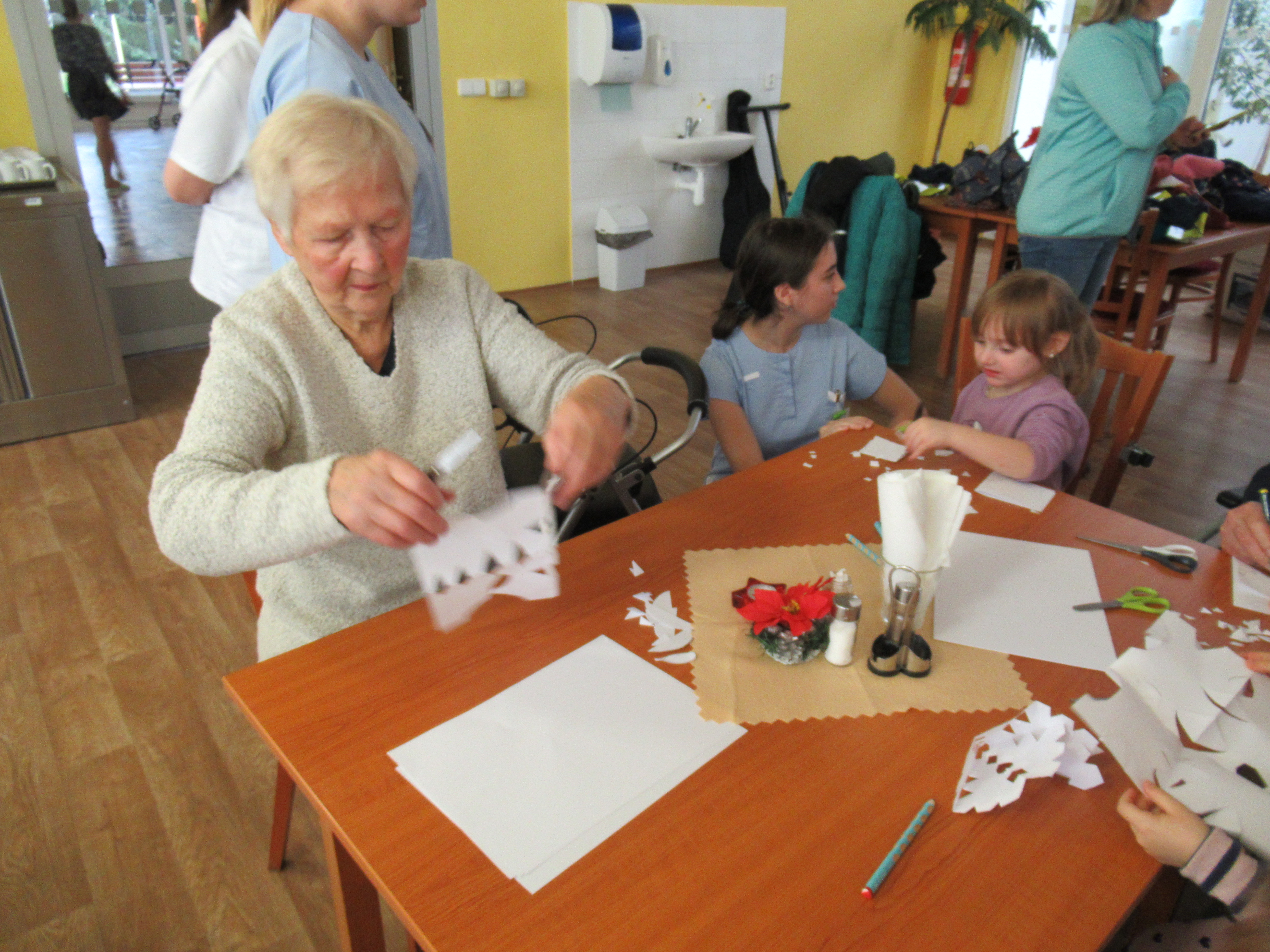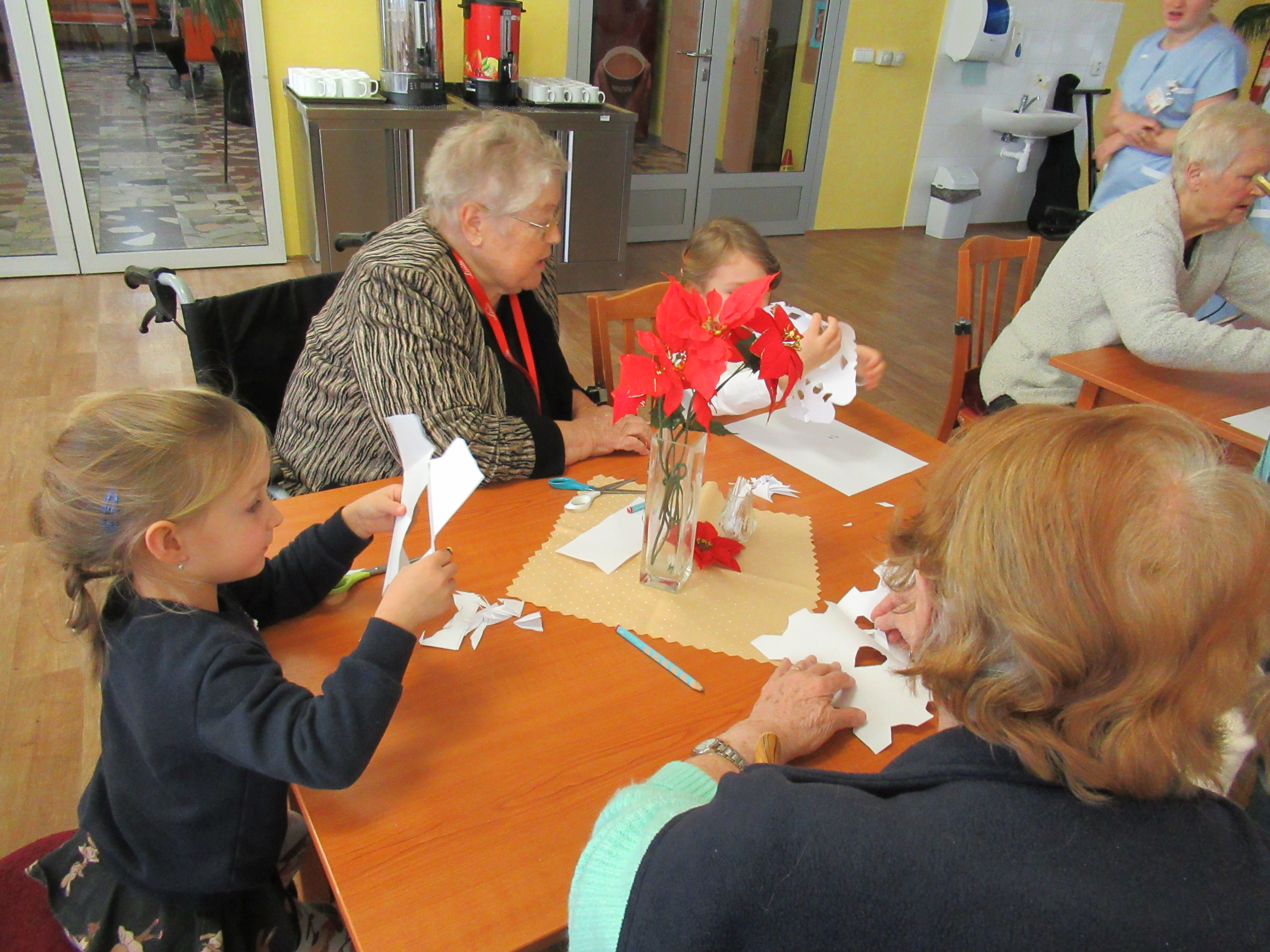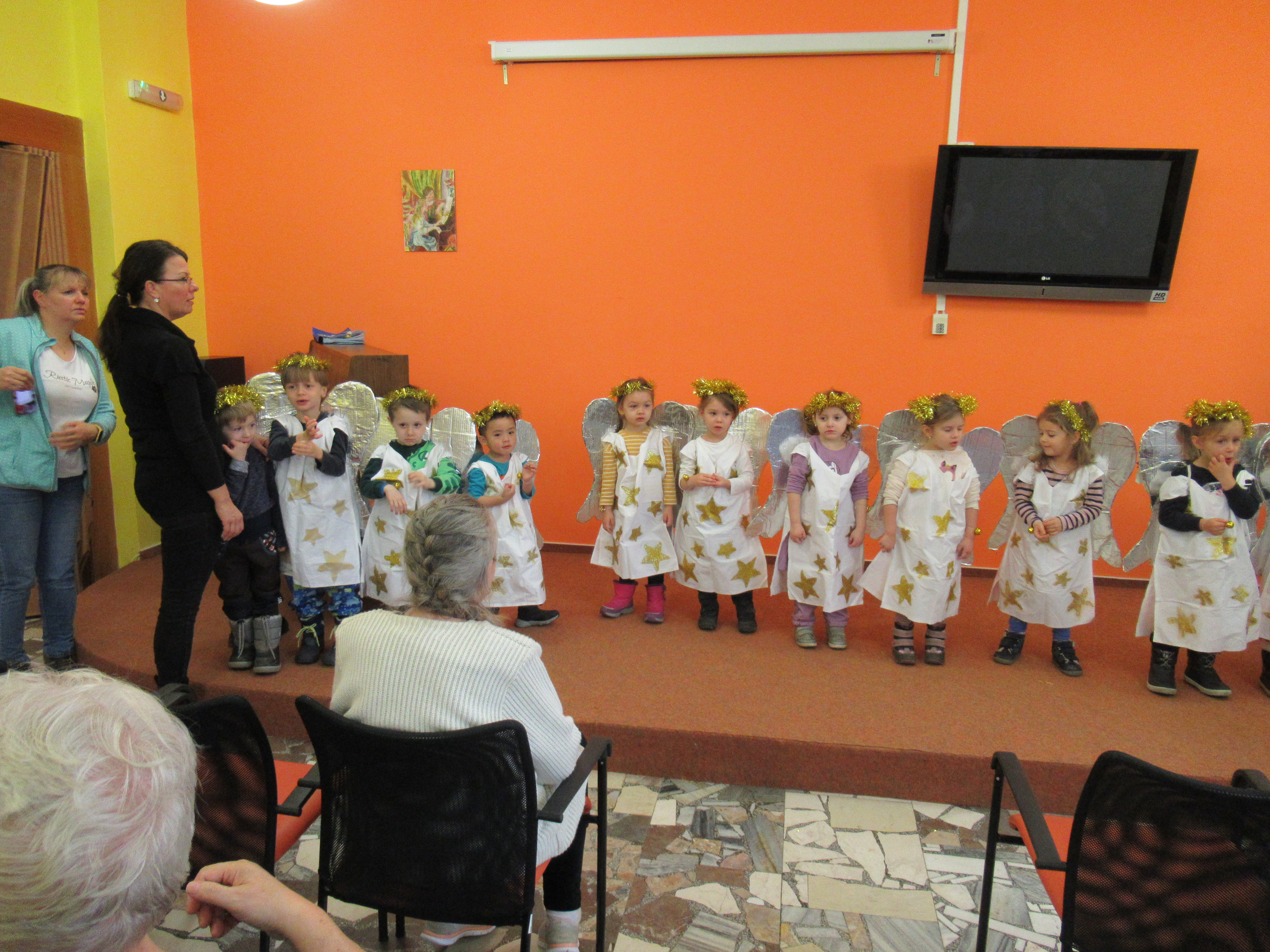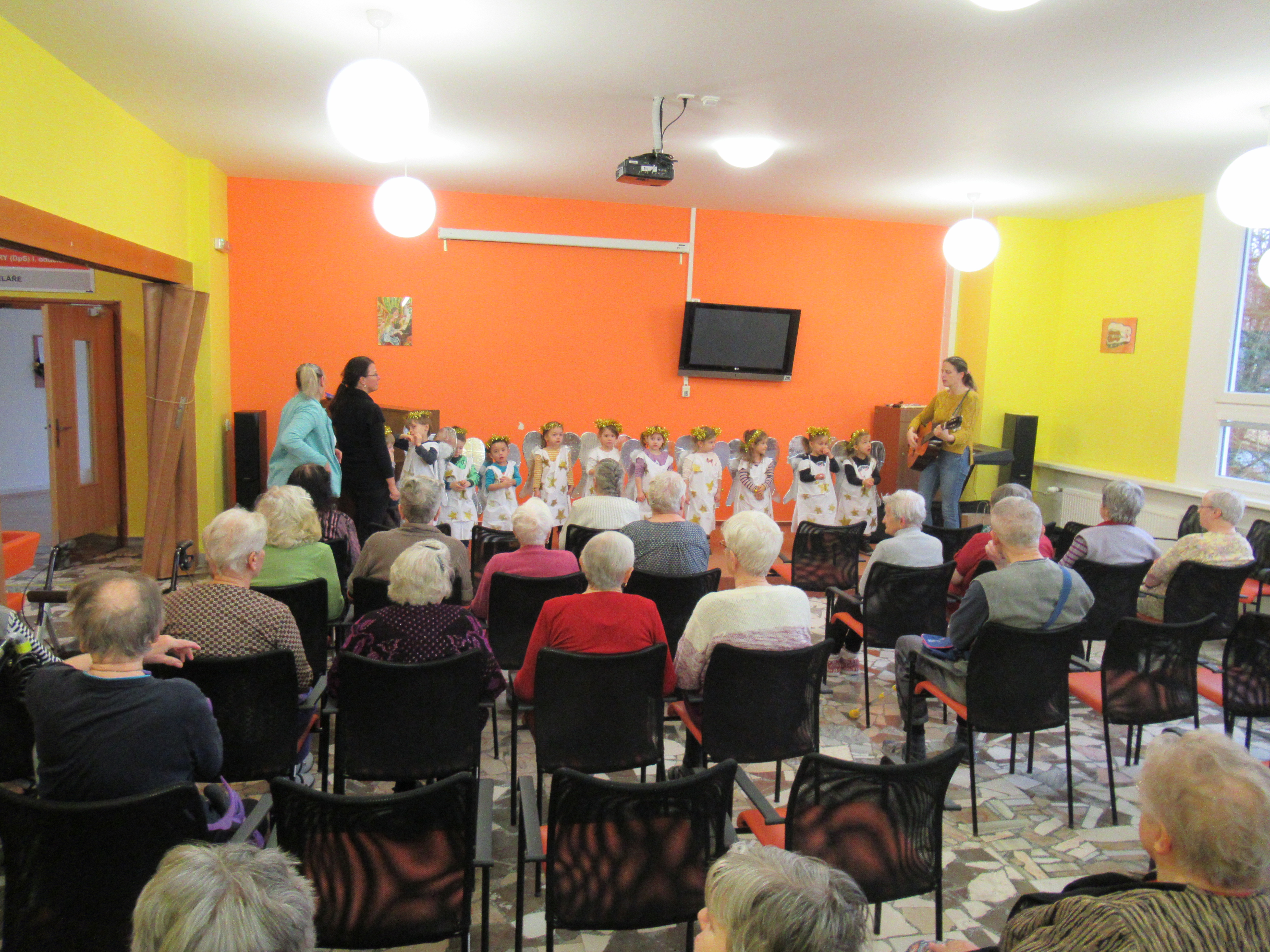 Přišly nám zazpívat děti z MŠ Borůvka, pak společně s našimi seniory vyráběly vánoční vločky. Moc děkujeme za krásné vánočně laděné odpoledne. Příště zas!