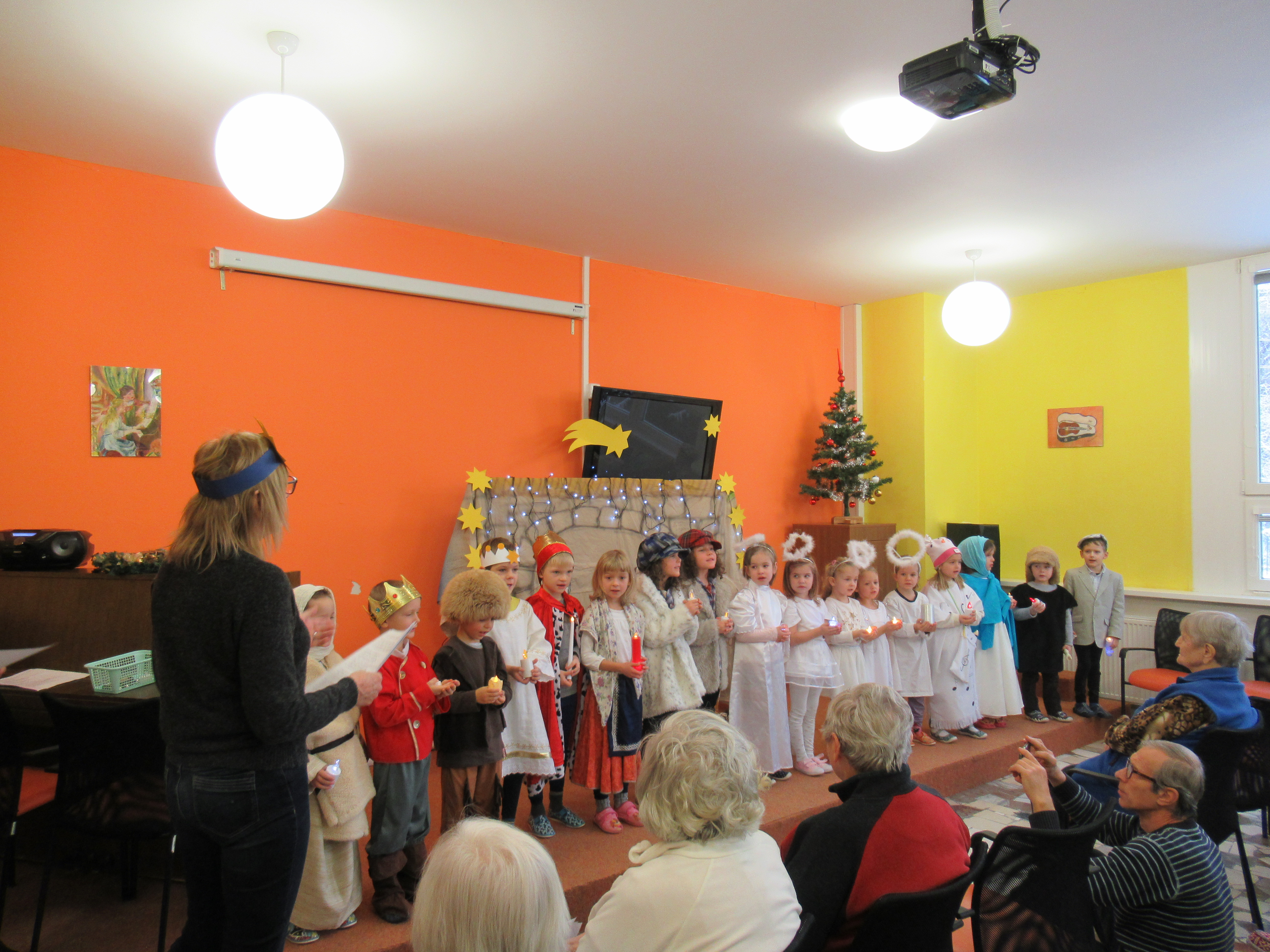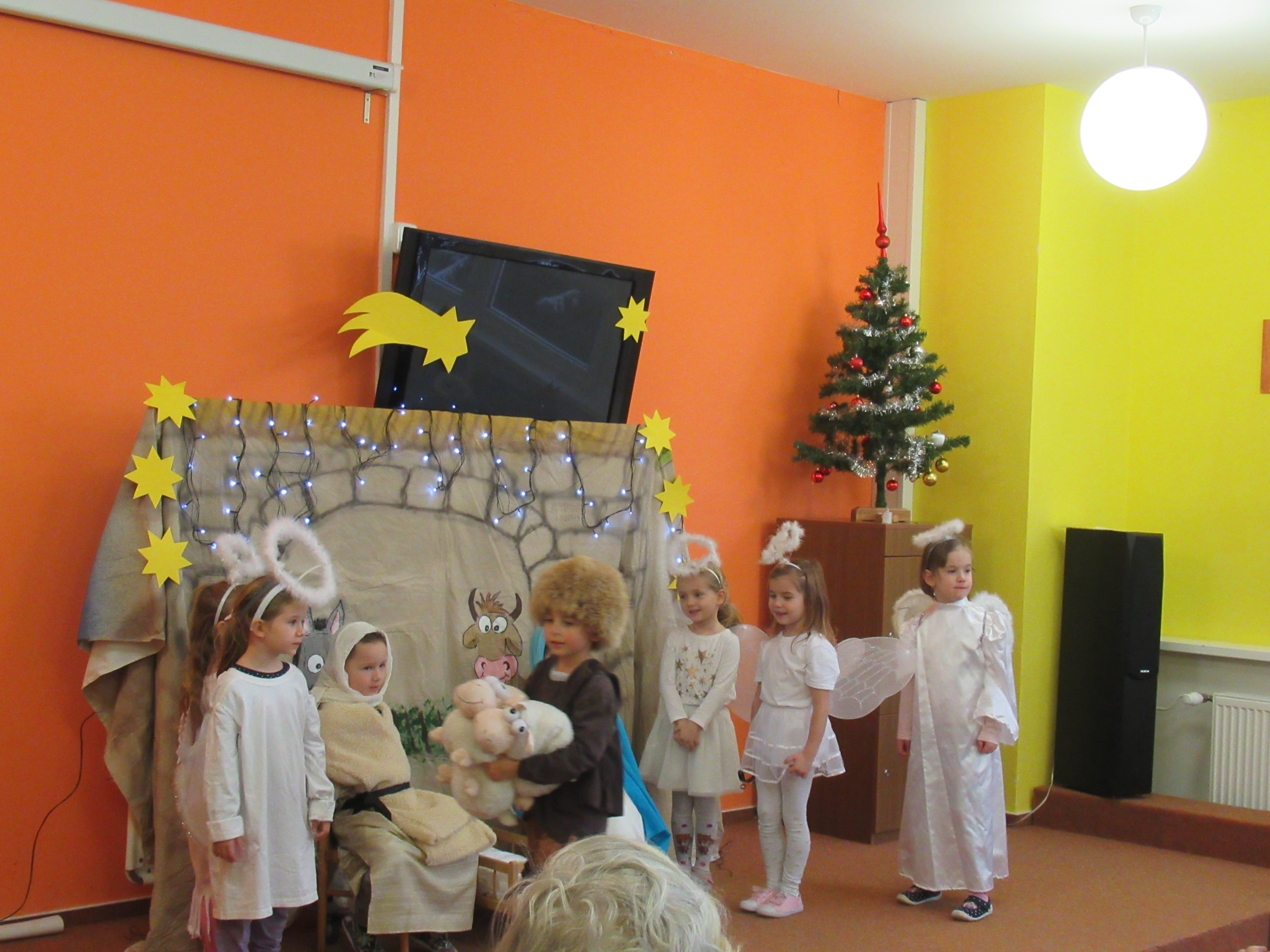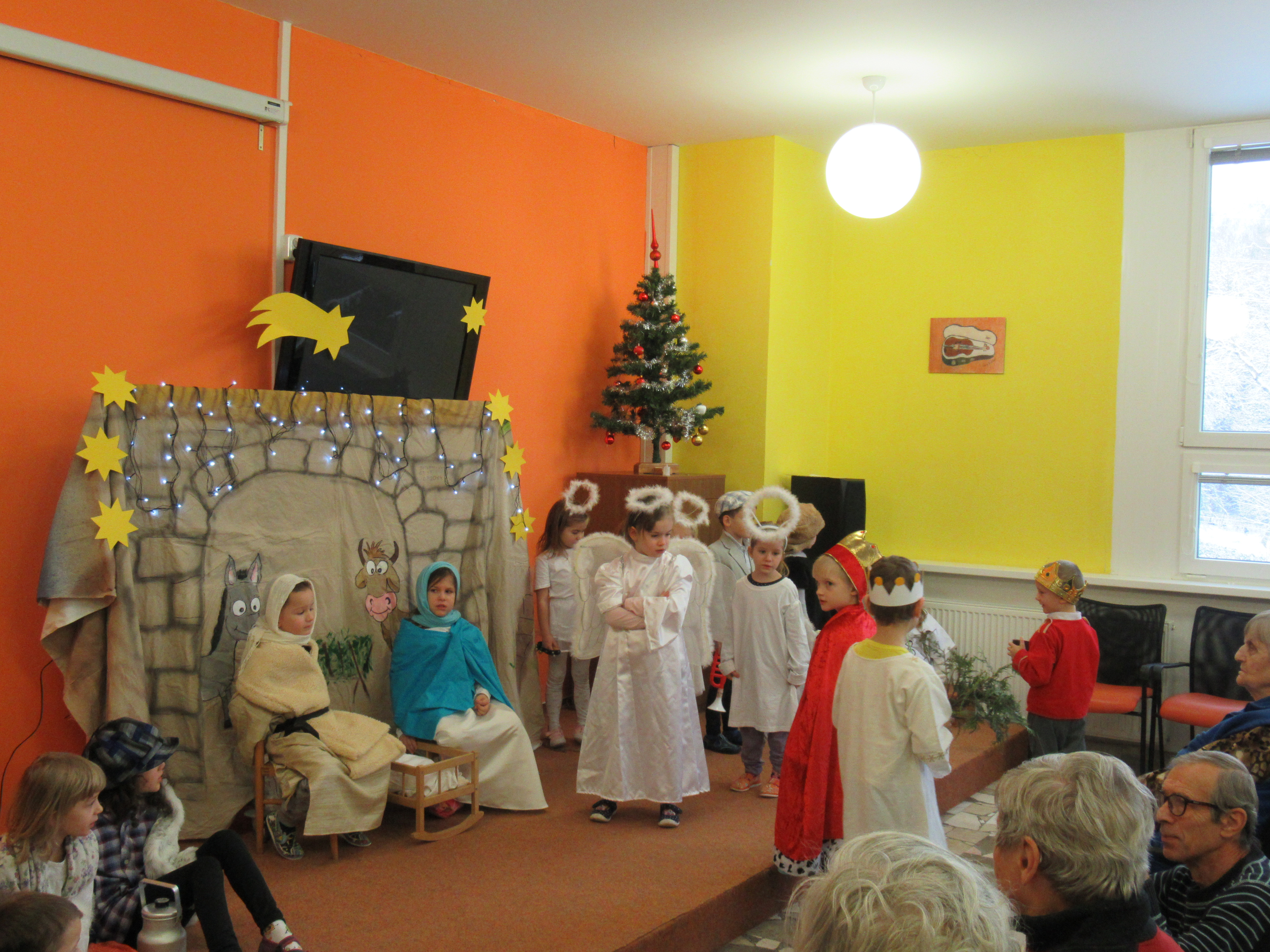 Krásné představení si pro nás připravily děti z MŠ Sluníčko. Sehrály nám vánoční pohádku o narození Ježíška. Děkujeme dětem i pedagogům za překrásné představení i nádherné výrobky. Udělaly všem radost.