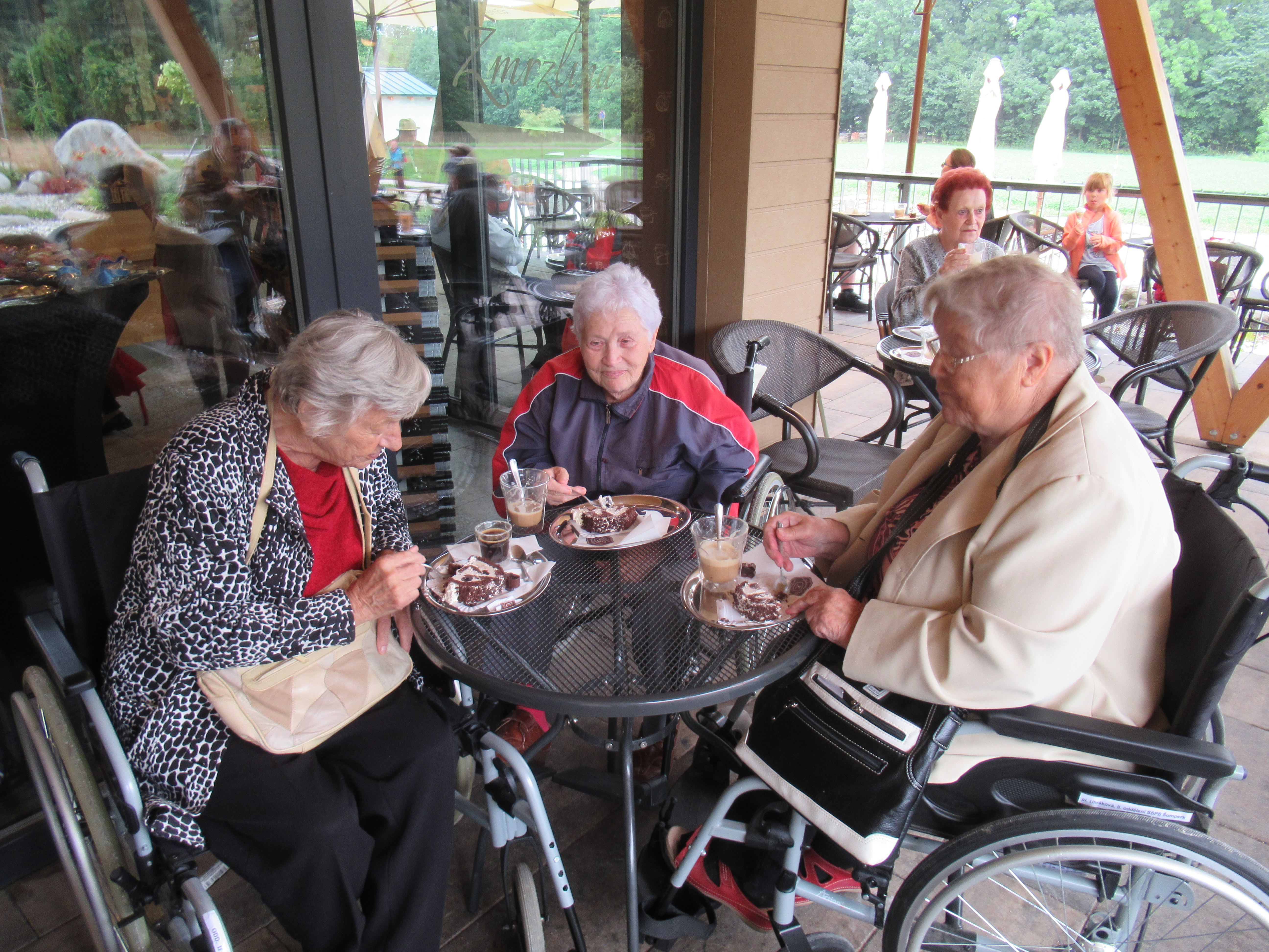 Dnešní den jsme pojali "výletně". Navštívili jsme Velkolosinskou Pralinkárnu a také muzeum skláren v Rapotíně. Pochutnali jsme si na dobré kávě a výborných zákuscích. Naši senioři si nakoupili nějaké sladkosti také domů. V Rapotíně jsme se dověděli spoustu zajímavých informací o výrobě skla i původních majitelích skláren a prohlédli jsme si vystavené exponáty. Na závěr jsme si v autobusu zazpívali písničku "Sláva, nazdar výletu.." I když nám počasí úplně nepřálo, výlet dopadl na výbornou. Akci finančně podpořilo Město Šumperk, za což moc děkujeme.