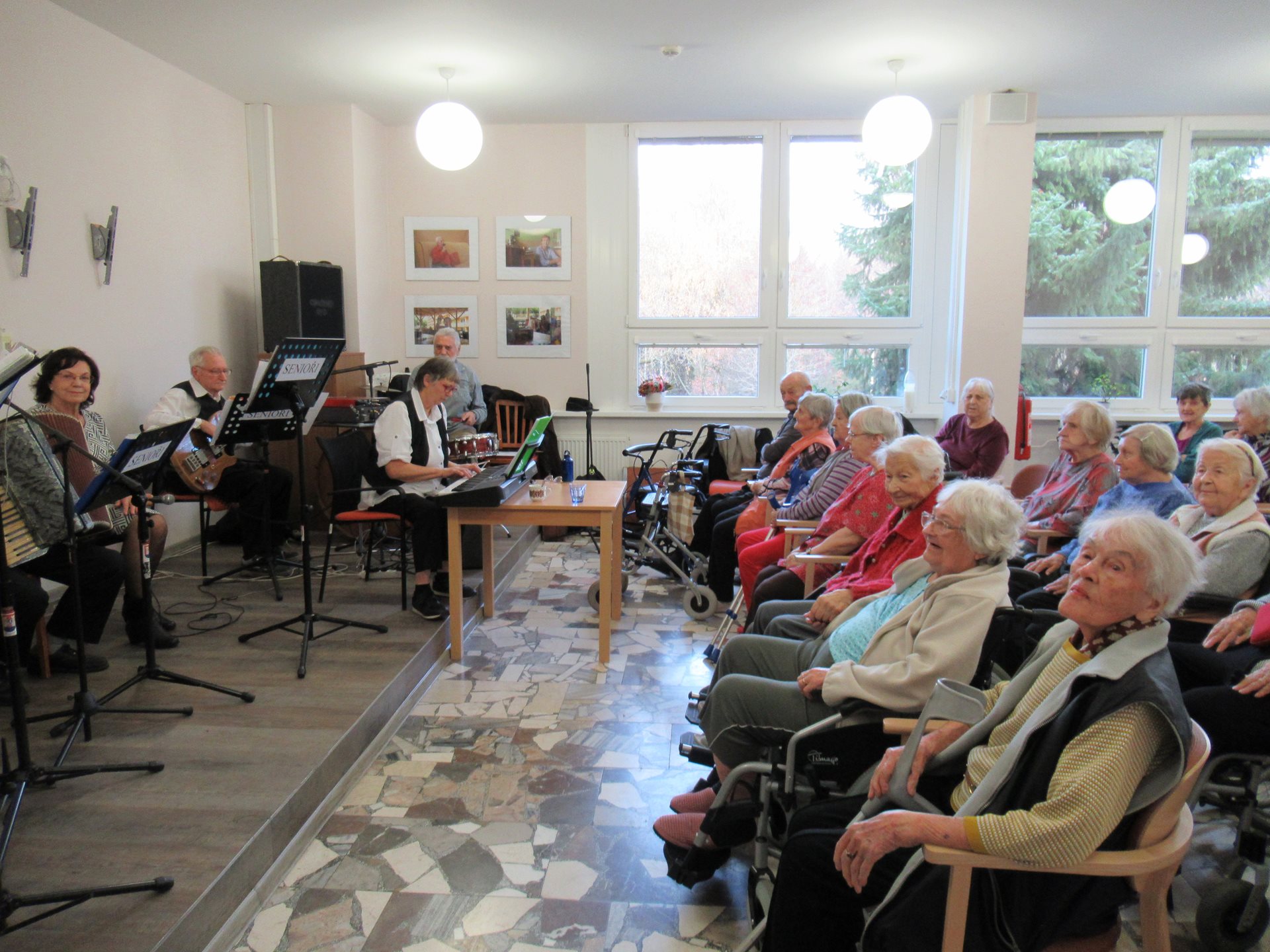 Někteří uživatelé se s chutí přidali ke zpěvu, jiní si vystoupení užívali v klidu a s úsměvem naslouchali. Děkujeme kapele Doktoři za návštěvu, energii a radost, kterou mezi naše seniory přinesla. Už nyní se těšíme na další setkání.