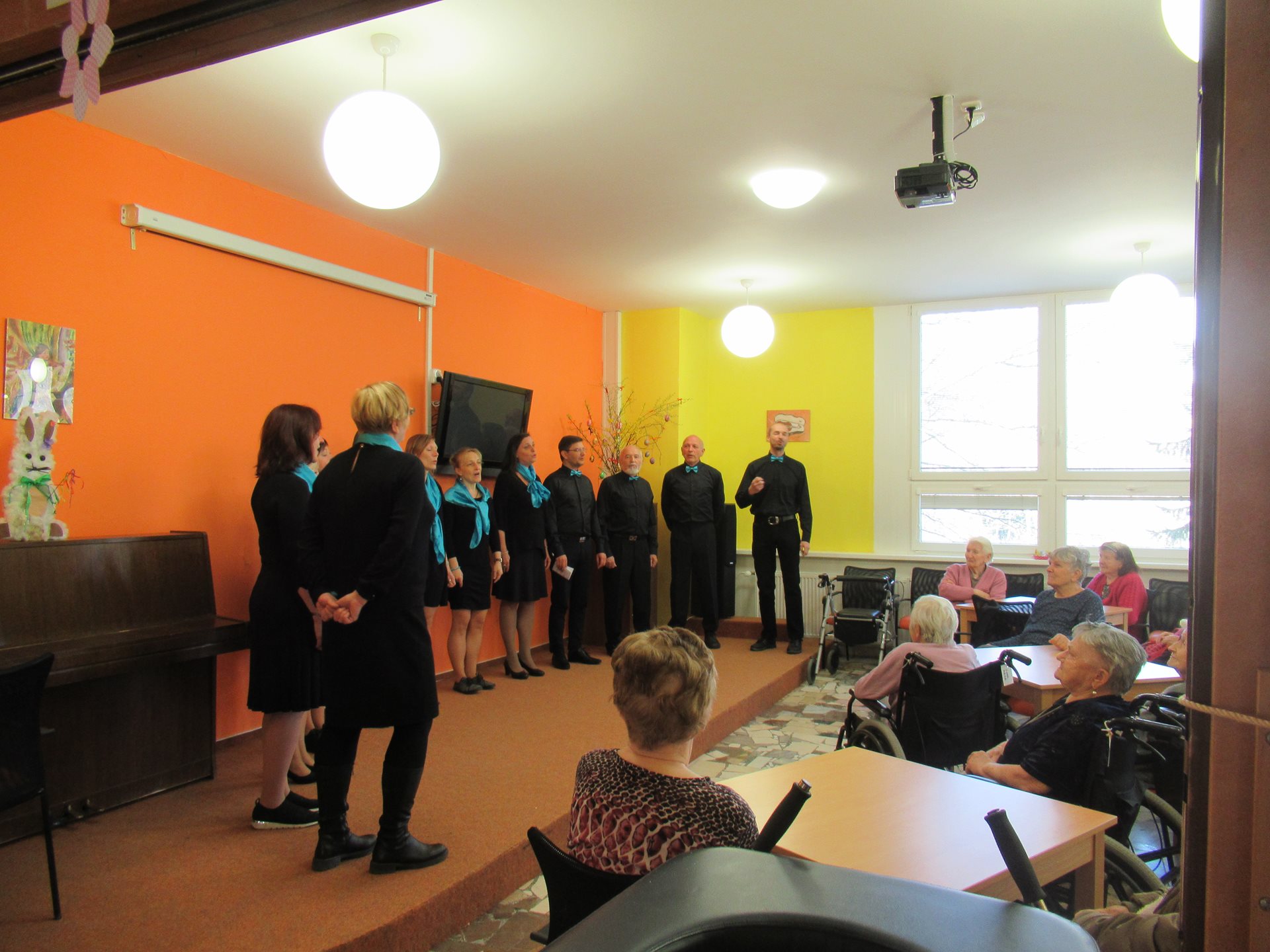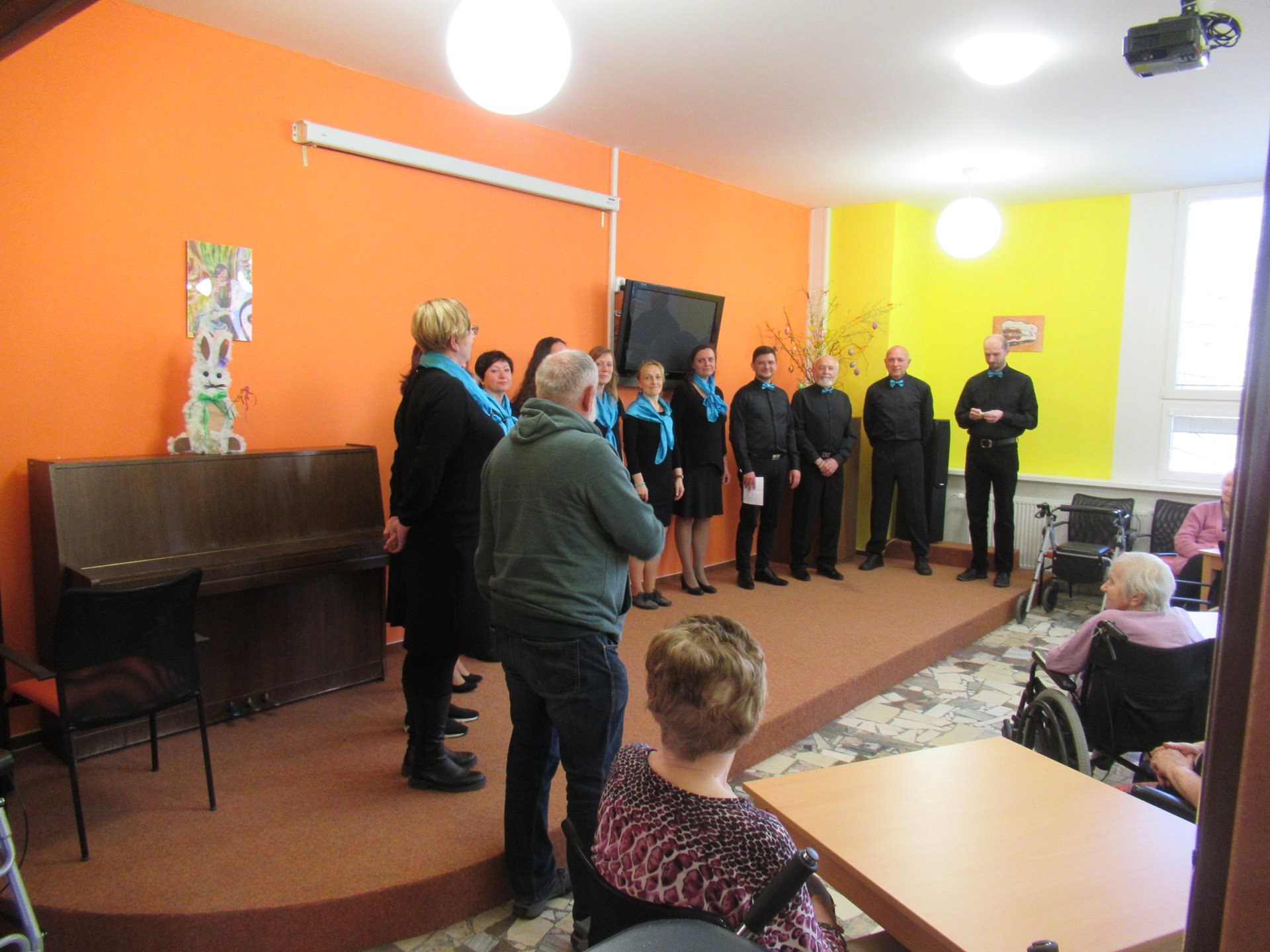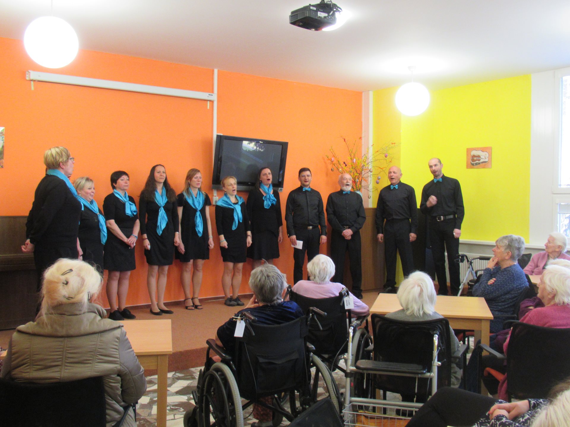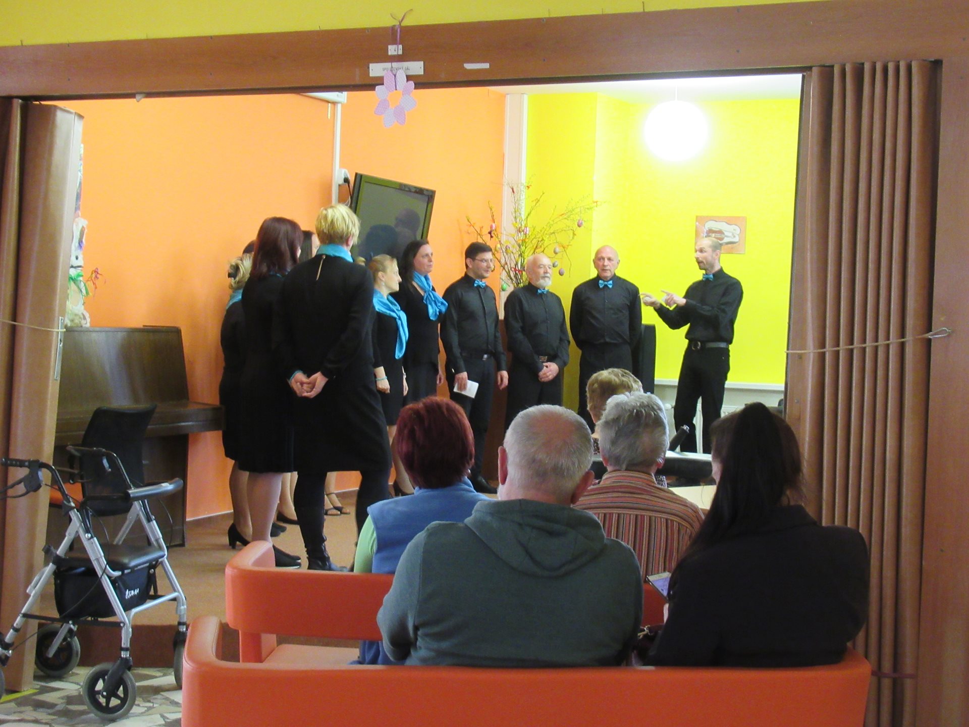 V úterý 12. 4. k nám zavítal komorní smíšený sbor Žádané a veselé zpěvy(Žavez) a zpestřil nám odpoledne upravenými lidovými písněmi. Moc se to všem líbilo.