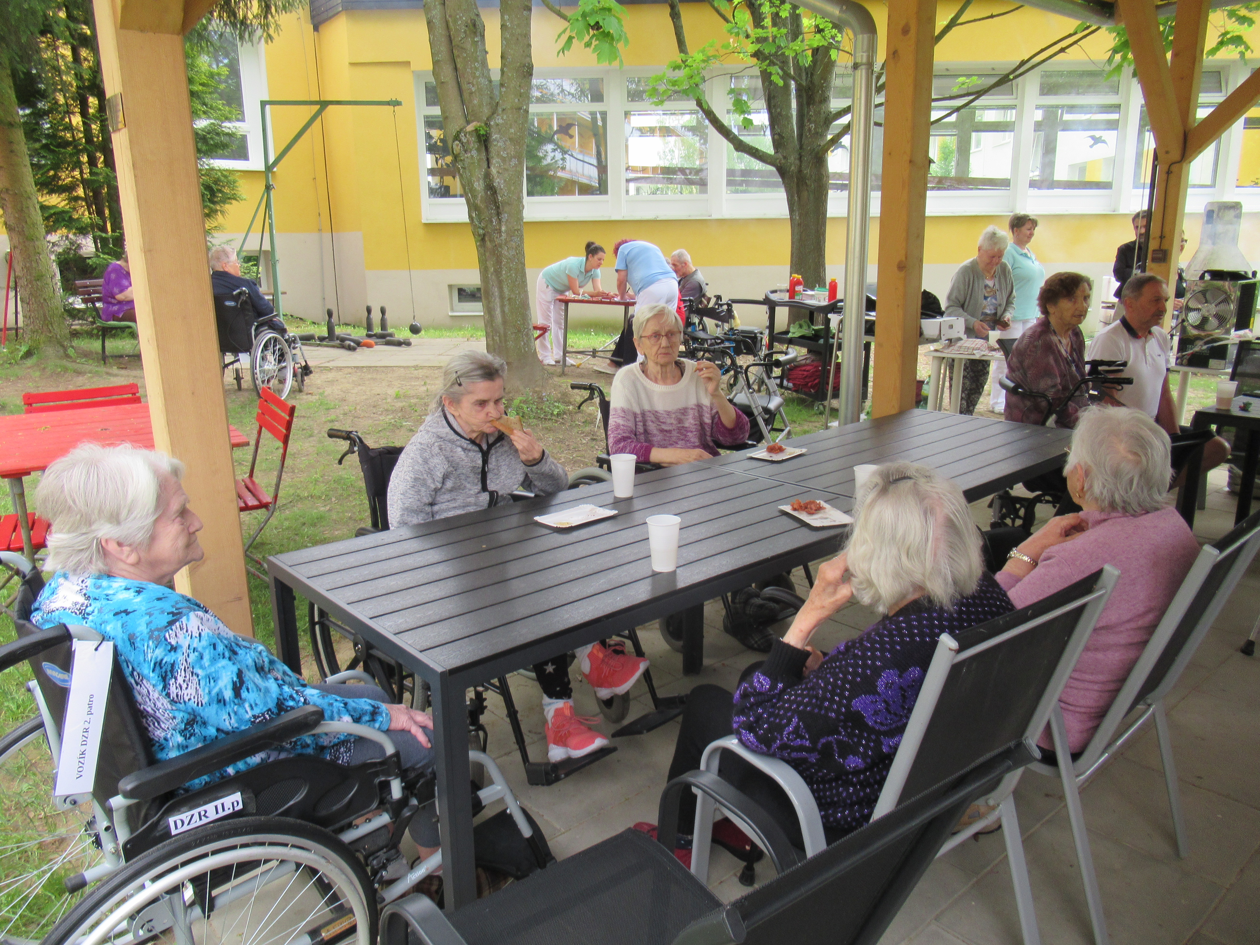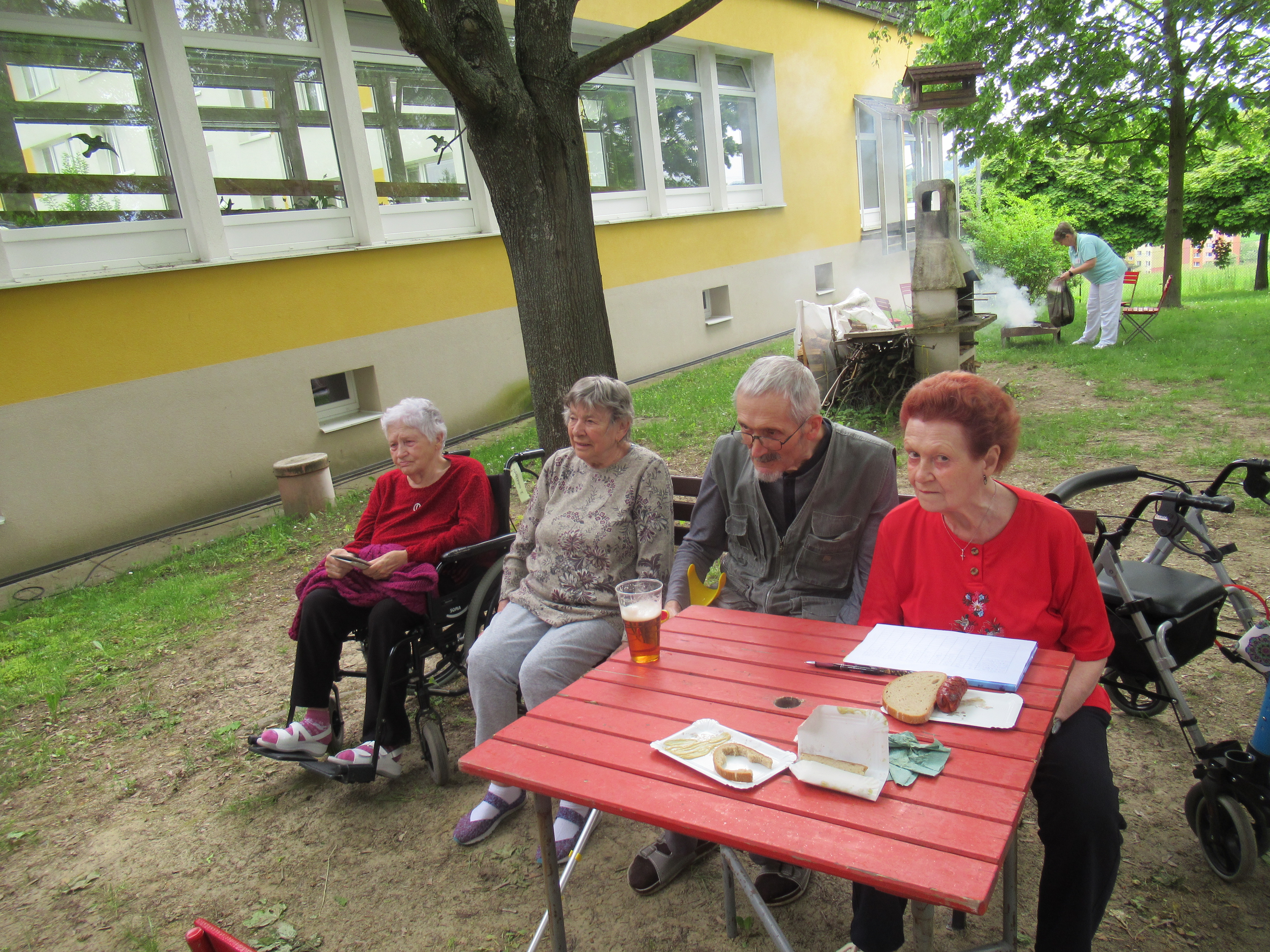 V úterý odpoledne jsme se sešli na zahradě, kde jsme si společně opekli špekáčky a zahájili kuželkovou sezónu. Někteří uživatelé si zahráli první letošní kuželky, ostatní poseděli pod pergolou a vychutnávali si opečené špekáčky společně s pivem nebo bezinkovou limonádou. Odpolední program nám přišla zpříjemnit paní Slávka Krejčí hrou na kytaru. Všichni jsme se dobře bavili a atmosféra byla výborná.