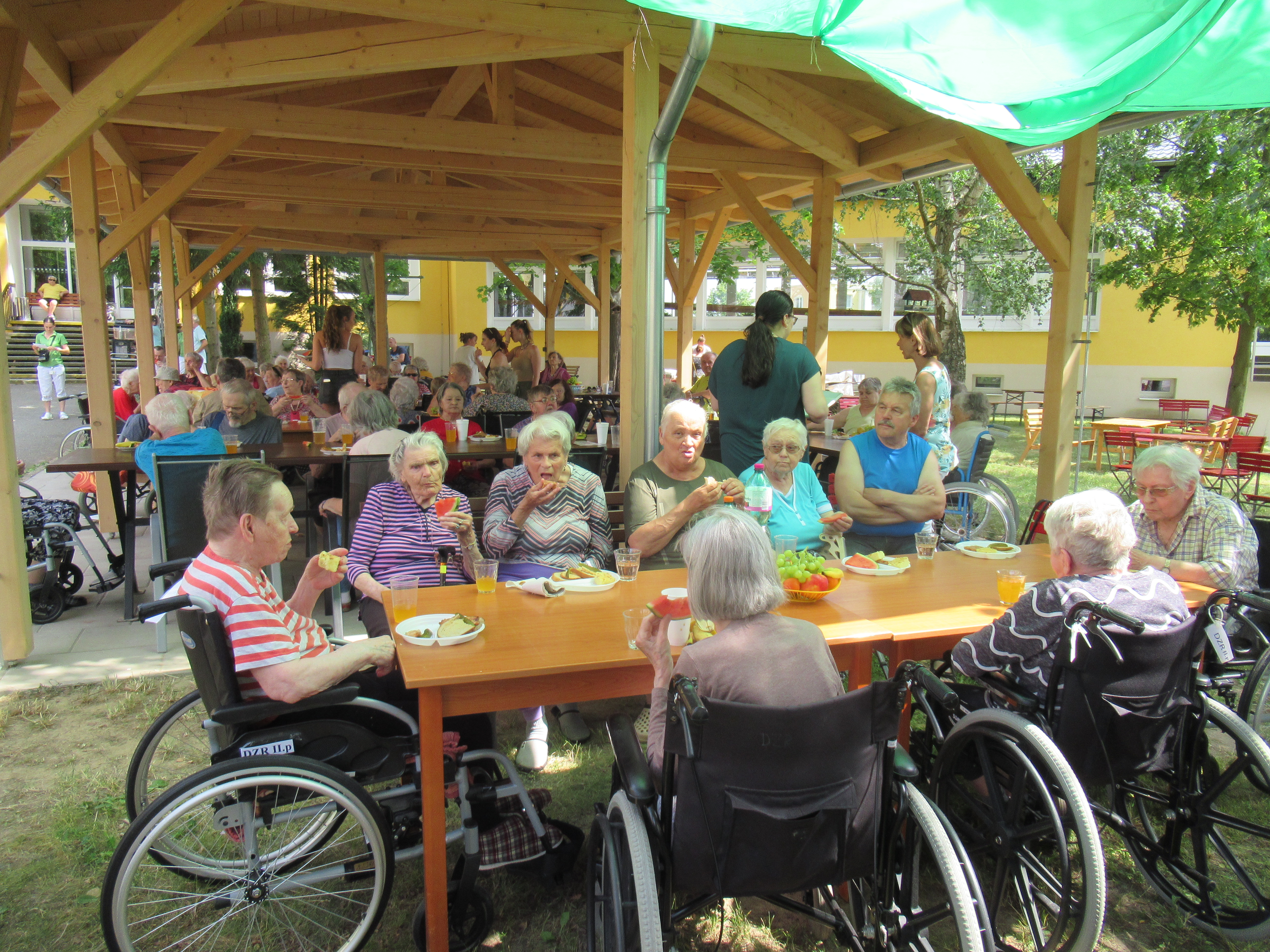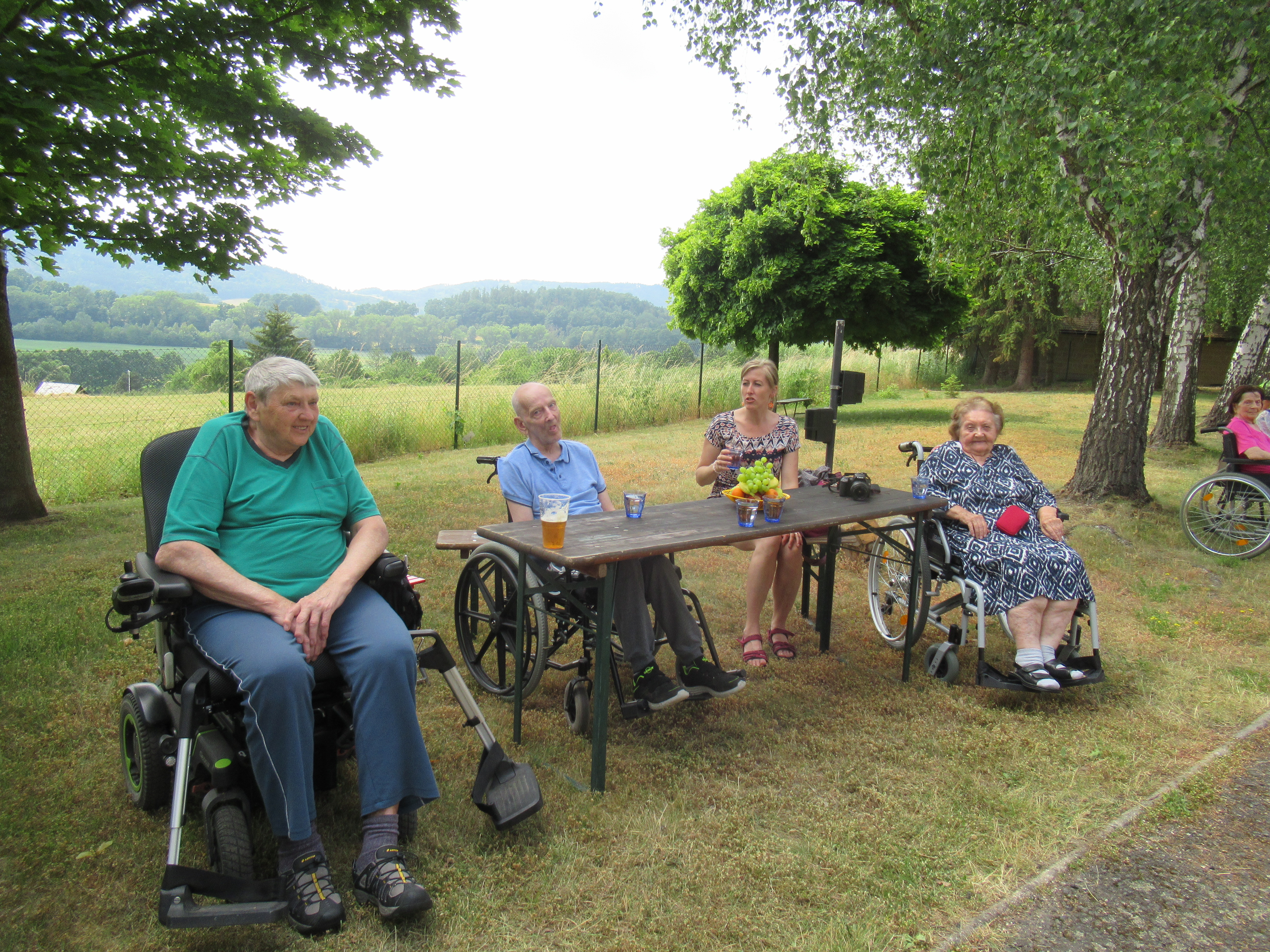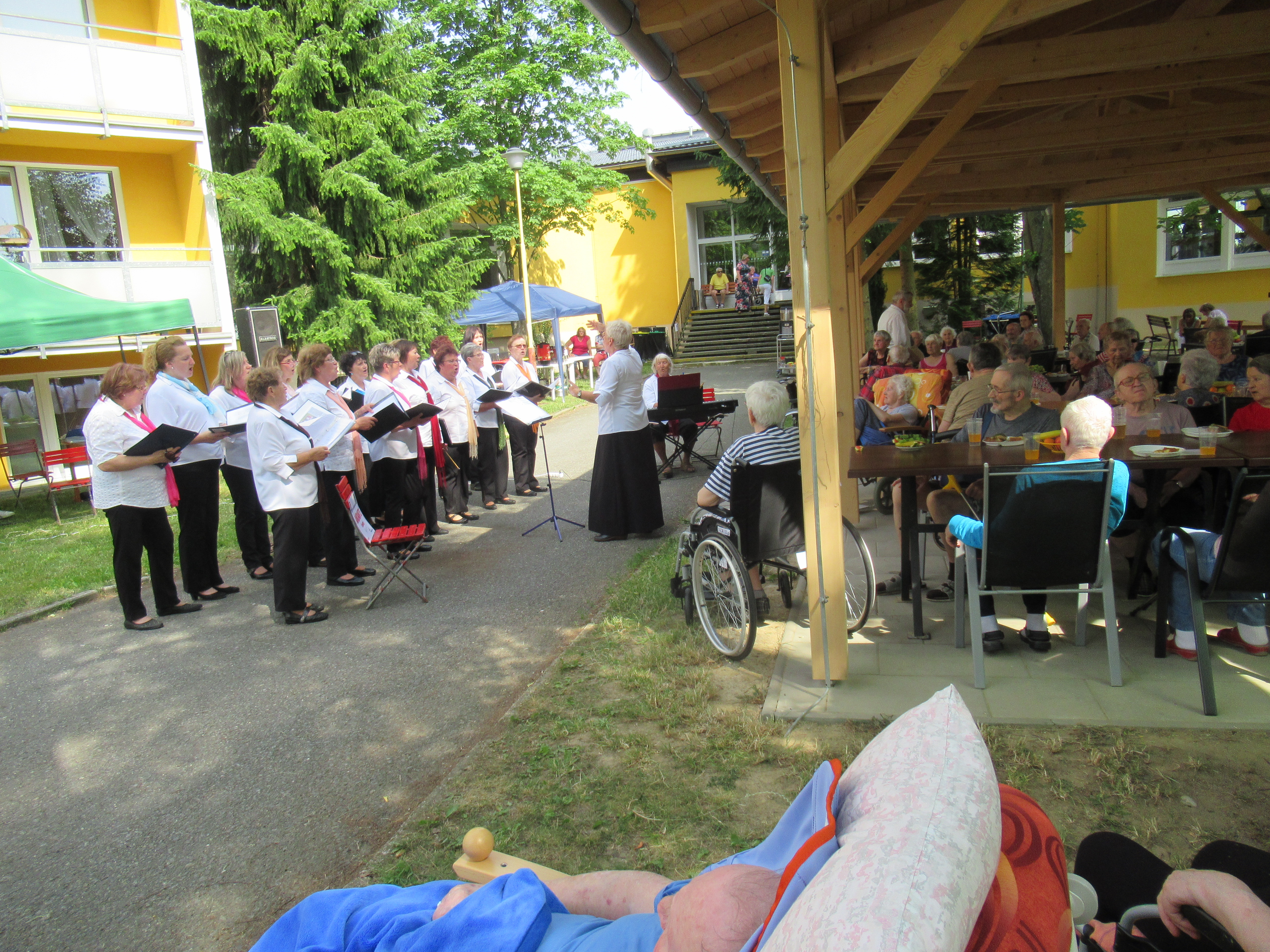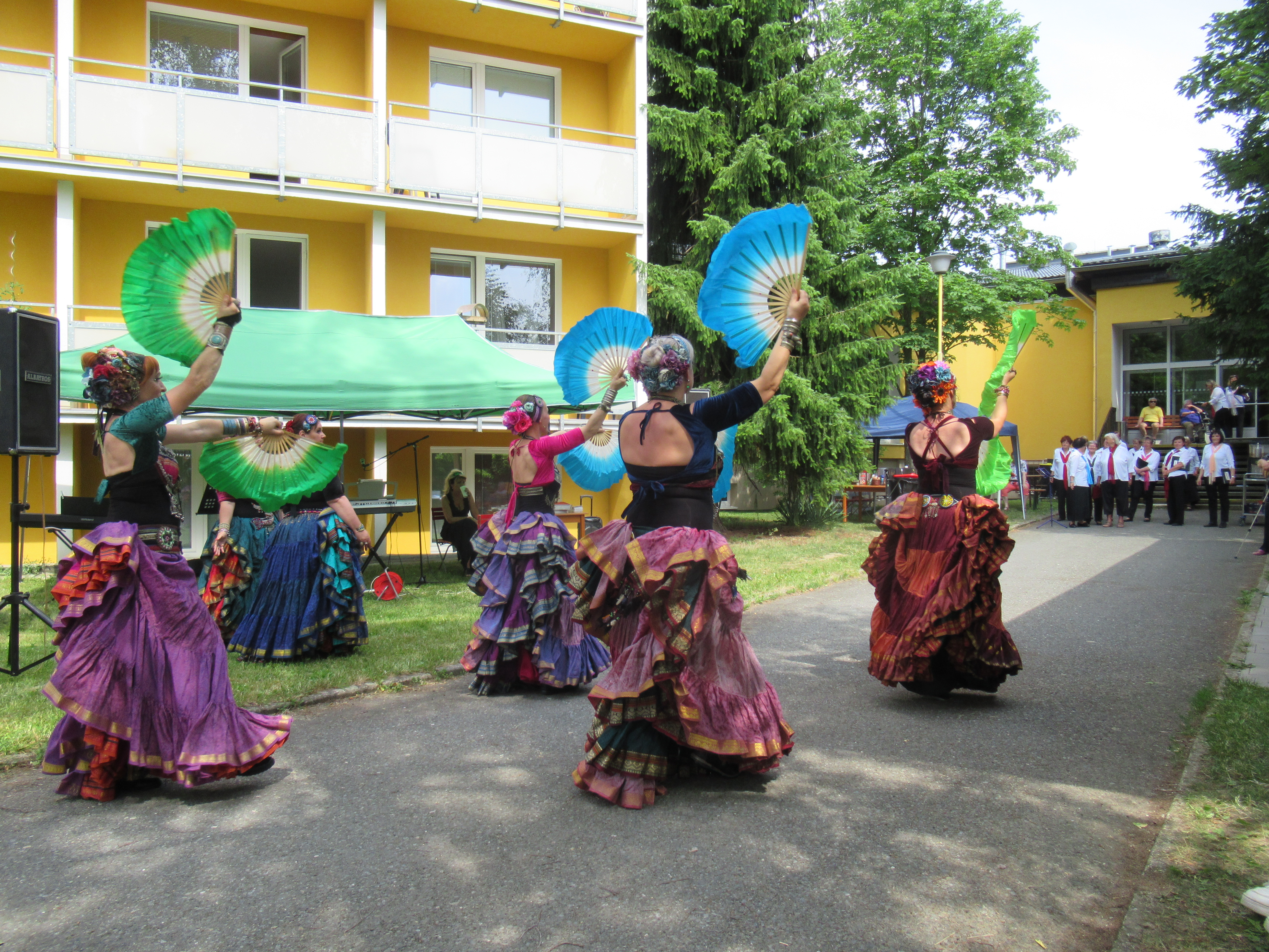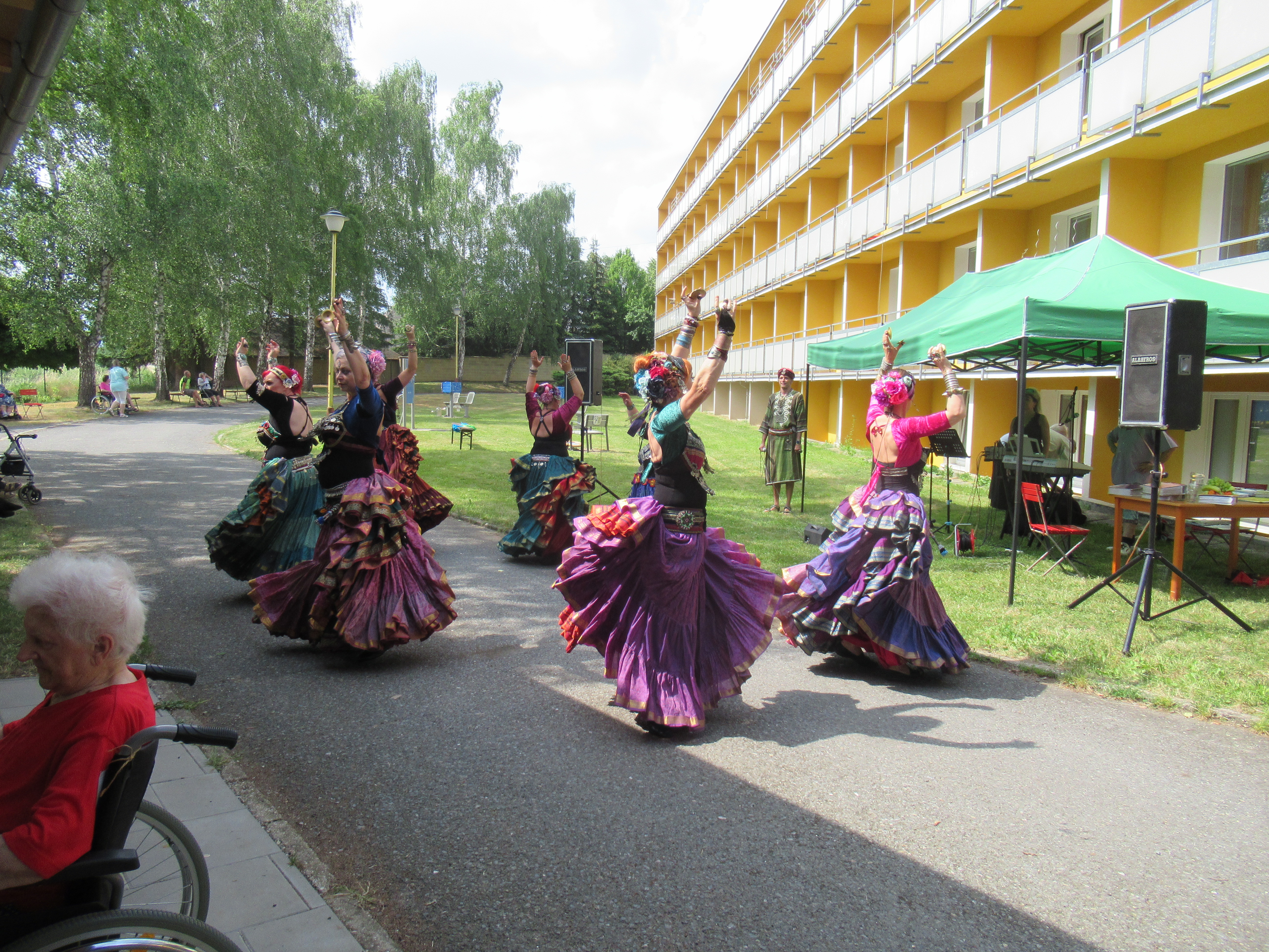 Letošní zahradní slavnost zahájila 5.ZŠ s tanečním kroužkem Pomáda, na ni navázalo vystoupení skupiny břišních tanečnic Angel's tribe a na závěr zazpíval folklorní pěvecký sbor Andante(seniorky Šumperk). Živou hudbu zajistilo Duo Albatros. Počasí nám přálo, svítilo sluníčko a ve stínu pod pergolou bylo příjemně. Děkujeme všem dobrovolníkům, vystupujícím a pečujícímu personálu, bez kterých by se slavnost nemohla konat.