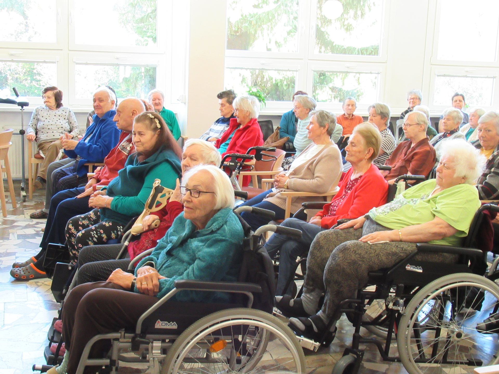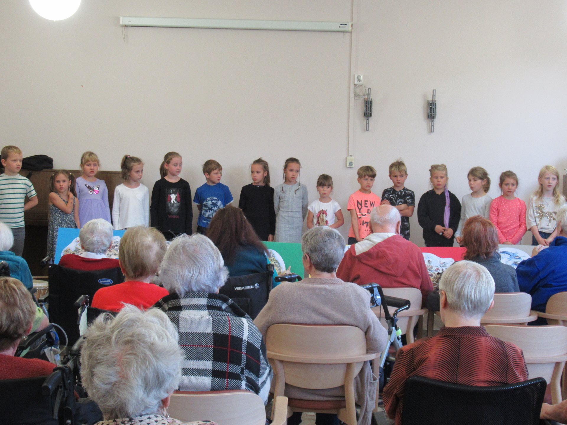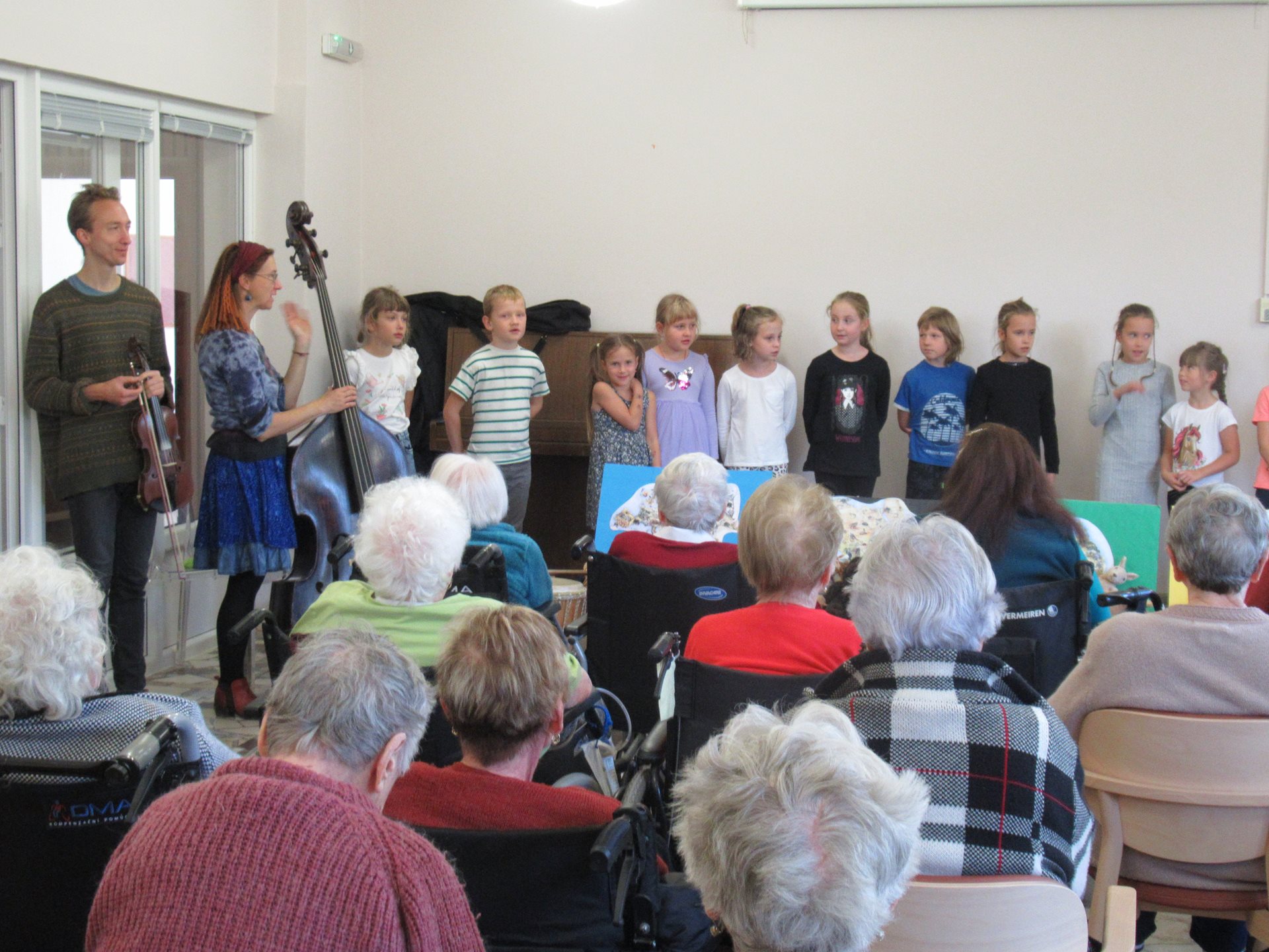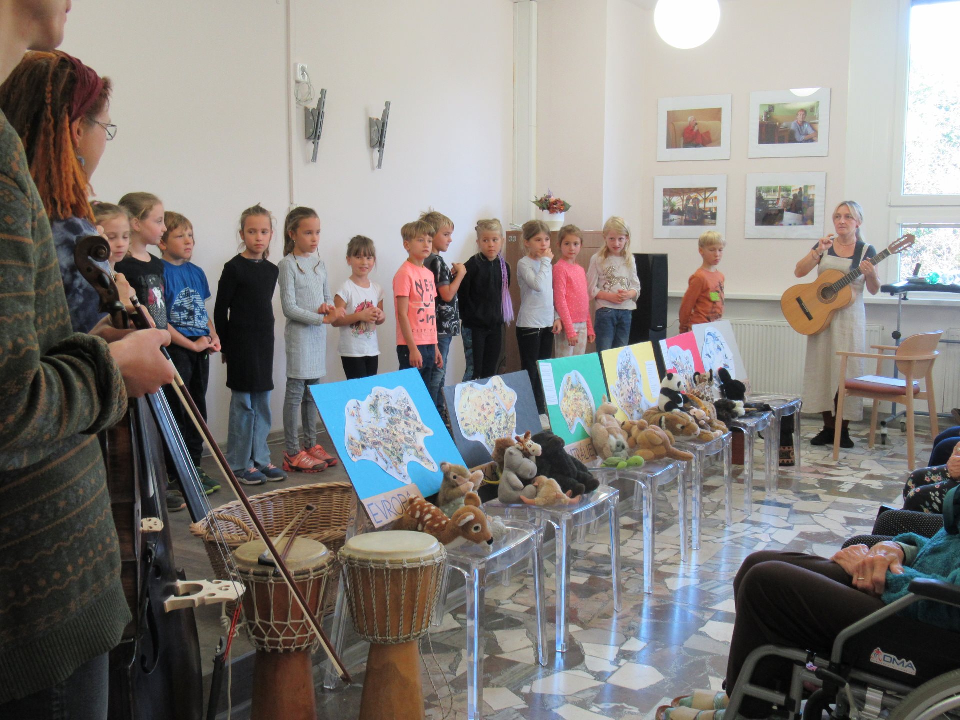 Tato akce se konala 30.9. v našem společenském sále. Hlavním námětem vystoupení bylo cestování po světových kontinentech a děti ho na závěr doplnily známými českými písněmi. Aby bylo vystoupení ještě barevnější a veselejší, přinesly si s sebou i plyšová zvířátka, která pocházejí s různých světadílů. Vystoupení se jim velmi podařilo a vykouzlilo úsměv na tvářích našich uživatelů.