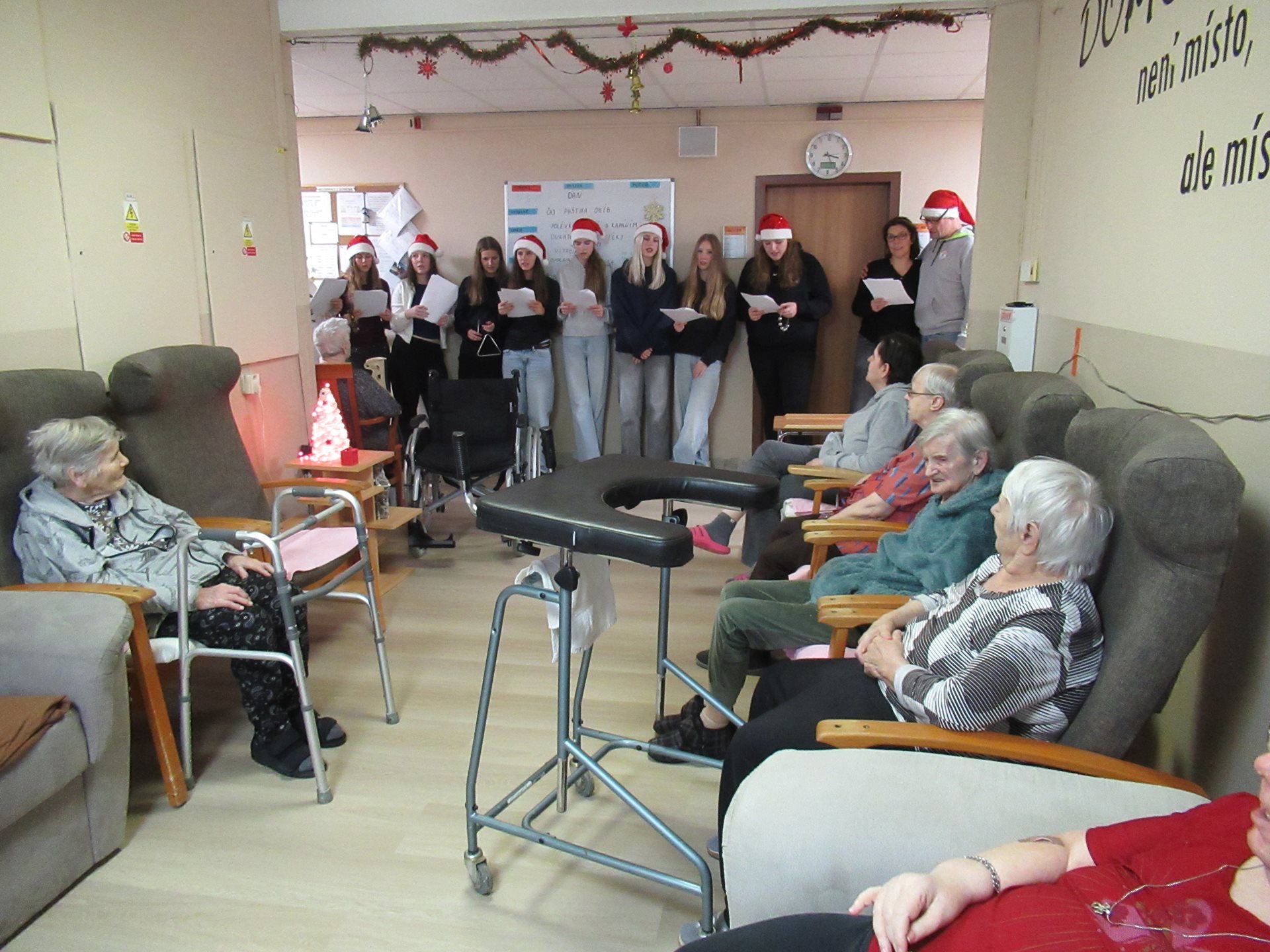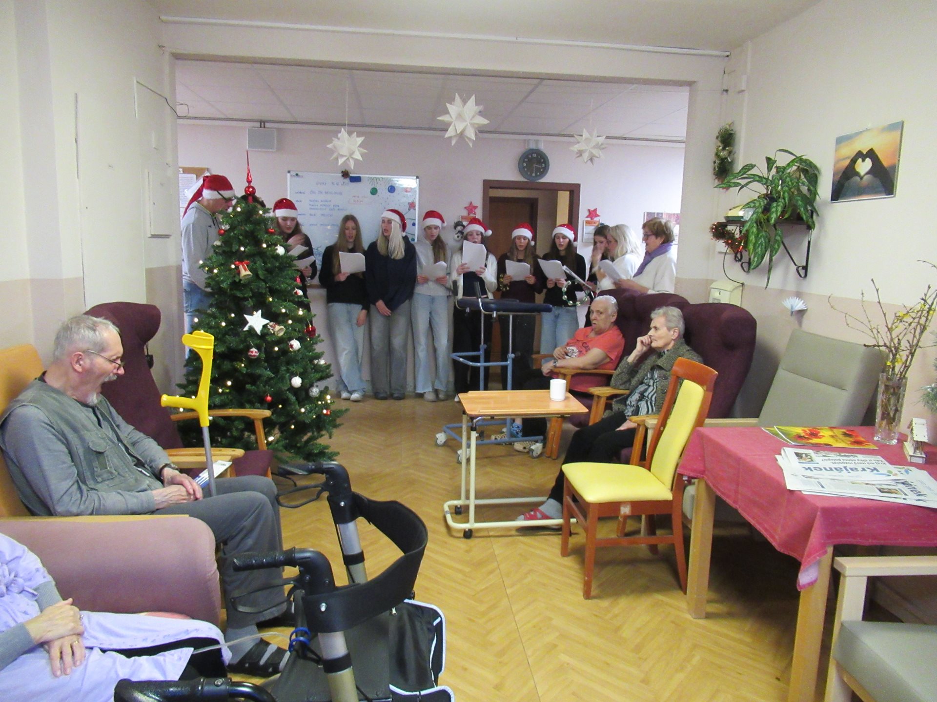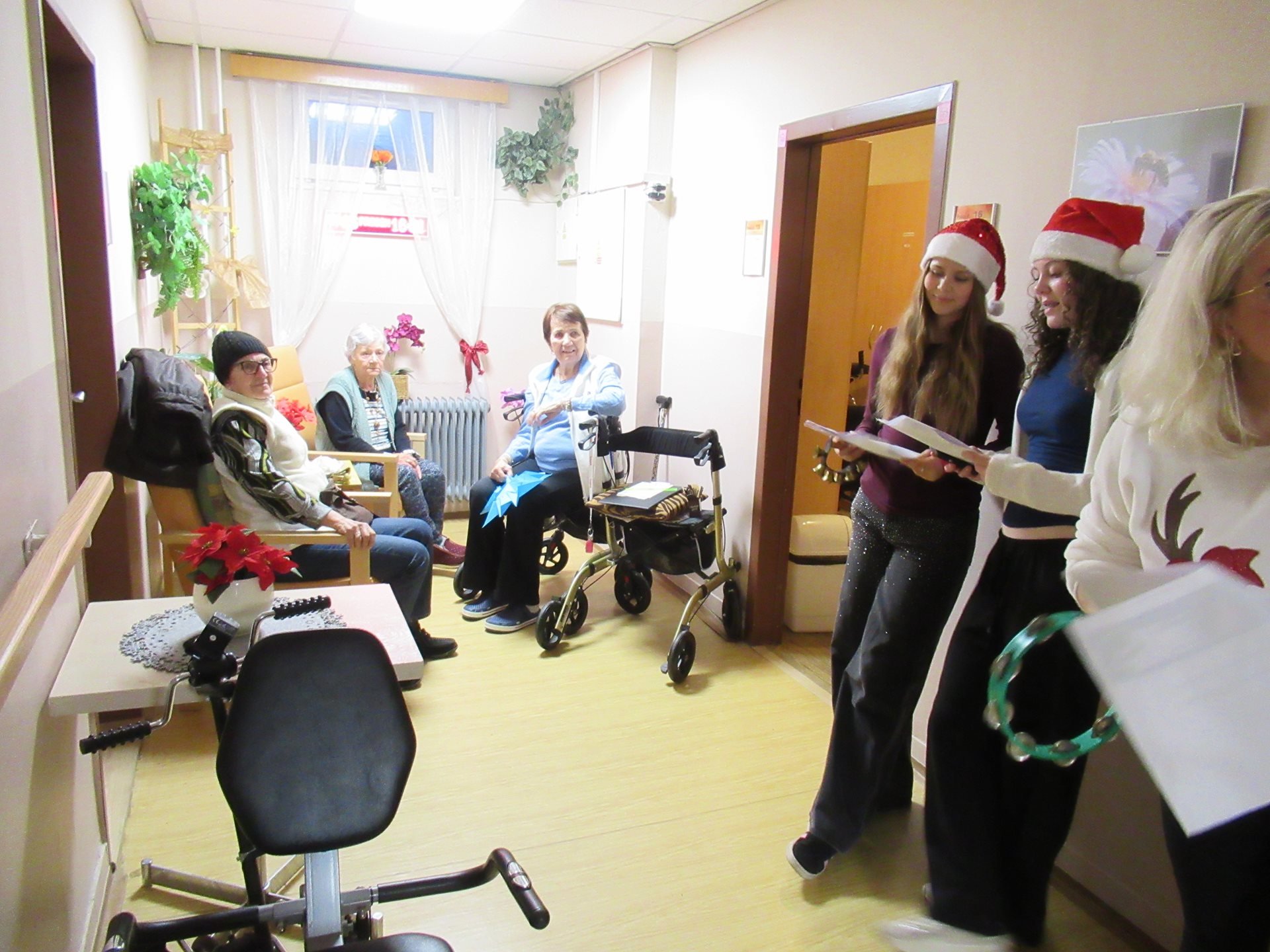 V předvánočním čase zavítaly do našeho domova pro seniory mladé volejbalistky, aby zde zazpívaly vánoční koledy a přinesly obyvatelům radost a sváteční náladu. Svým zpěvem potěšily seniory přímo na jednotlivých odděleních, díky čemuž se vánoční atmosféra dostala ke každému. Dívky zazpívaly známé české koledy, které u seniorů vyvolaly úsměvy i dojetí. Mnozí se ke zpěvu s radostí přidali a společně si připomněli kouzlo Vánoc. Osobní návštěva na odděleních byla velmi ceněná, zejména u těch seniorů, kteří se nemohou účastnit společných akcí. Vystoupení mladých volejbalistek bylo krásným projevem solidarity, laskavosti a ochoty věnovat svůj čas druhým.